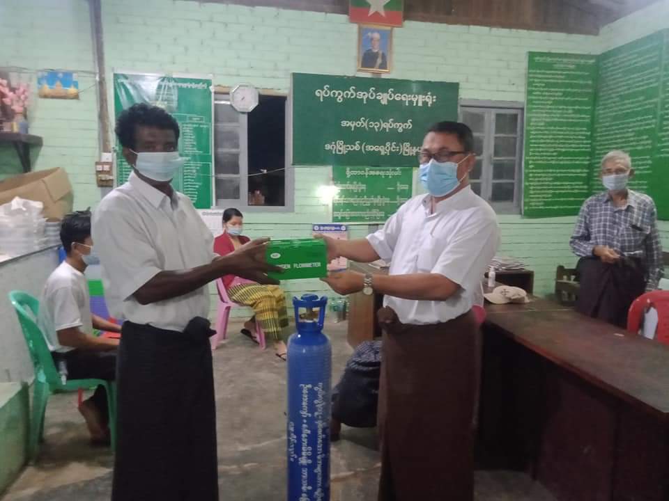 ရန်ကုန်တိုင်းဒေသကြီး၊ အရှေ့ပိုင်းခရိုင်၊ ဒဂုံမြို့သစ်(အရှေ့ပိုင်း)မြို့နယ်၌ ကိုဗစ်-၁၉ရောဂါ ကာကွယ်၊ တားဆီး၊ ထိန်းချုပ်၊ ကုသရေး လုပ်ငန်းများအား အထောက်အကူပြုစေရန်နှင့် ရောဂါကူးစက်ခံရသူများအား အသက်ကယ်တင်နိုင်ရေးအတွက် ကိုဗစ်-၁၉ ရောဂါ ကာကွယ်ရေးသုံး ပစ္စည်းများဖြစ်သော အောက်စီဂျင်အိုးများနှင့် ဆက်စပ်ပစ္စည်းများအား ယမန့်နေ့ နေ့လယ်(၃)နာရီက အမှတ်(၁၃) ရပ်ကွက် အုပ်ချုပ်ရေးမှူး ရုံးသို့ လာရောက် လှူဒါန်းခဲ့ကြောင်း သိရသည်။