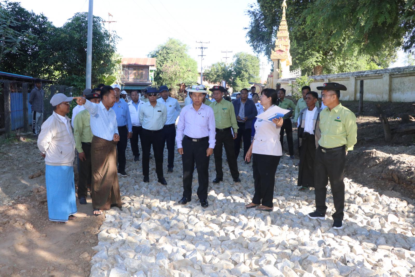 အလားတူ တိုင်းဒေသကြီး ဝန်ကြီးချုပ်နှင့် တာဝန်ရှိသူများသည် နိုဝင်ဘာလ ၁၅ ရက်၊ နံနက်ပိုင်းတွင်း ကန့်ဘလူမြို့နယ်၊ တောက္ကရှပ်-မင်းကုန်းလမ်း အရှည် - ၁၆၈၂ ပေ၊ အကျယ် -၁၂ ပေ၊ ကွန်ကရစ်လမ်းခင်းကျင်းရန် အောက်ခံကျောက်ခင်းခြင်းလုပ်ငန်း ဆောင်ရွက်နေမှု၊ ကန့်ဘလူမြို့နယ်၊ မူးဘောင်လမ်းမှ ကံရိုးရွာအဝင်လမ်း အရှည် - ၇ ဖာလုံ၊ အကျယ် - ၁၂ ပေ၊ ကျောက်ခင်းခြင်းလုပ်ငန်းများ ဆောင်ရွက်နေမှုများအား လိုက်လံကြည့်ရှုစစ်ဆေးခဲ့ကြပြီး လမ်းခင်းခြင်းလုပ်ငန်းများ အရည်အသွေးပြည့်မီစွာဖြင့် ဆောင်ရွက်သွားရေးတို့အား တာဝန်ရှိများကို မှာကြားကာ လိုအပ်သည်များကို တာဝန်ရှိသူများနှင့် ဖြည့်ဆည်းပေါင်းစပ်ဆောင်ရွက်ပေးခဲ့သည်။