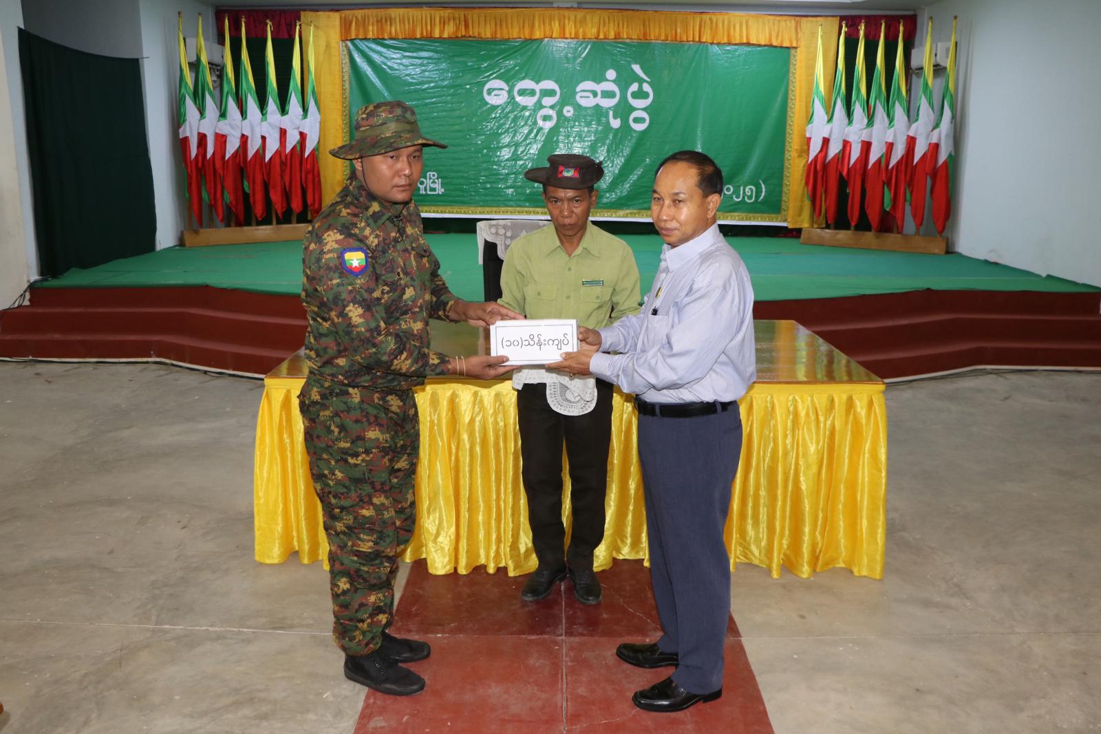 ဆက်လက်၍ တိုင်းဒေသကြီး ဝန်ကြီးချုပ်က ကန့်ဘလူခရိုင်အတွင်းရှိ ကန့်ဘလူ မြို့၊ကျွန်းလှမြို့နှင့် တန့်ဆည်မြို့များရှိ ပြည်သူ့စစ် (ဌာနေ) အဖွဲ့များအား ဂုဏ်ပြုချီးမြှင့်ငွေ ကျပ် - ၁၀ သိန်းစီအား ပေးအပ်ချီးမြှင့်ပြီး ပြည်သူ့စစ် (ဌာနေ) အဖွဲ့များကိုယ်စား ပြည်သူ့စစ် (ဌာနေ) တပ်ဖွဲ့ဝင်တစ်ဦးက ကျေးဇူးတင်စကား ပြန်လည်ပြောကြားသည်။