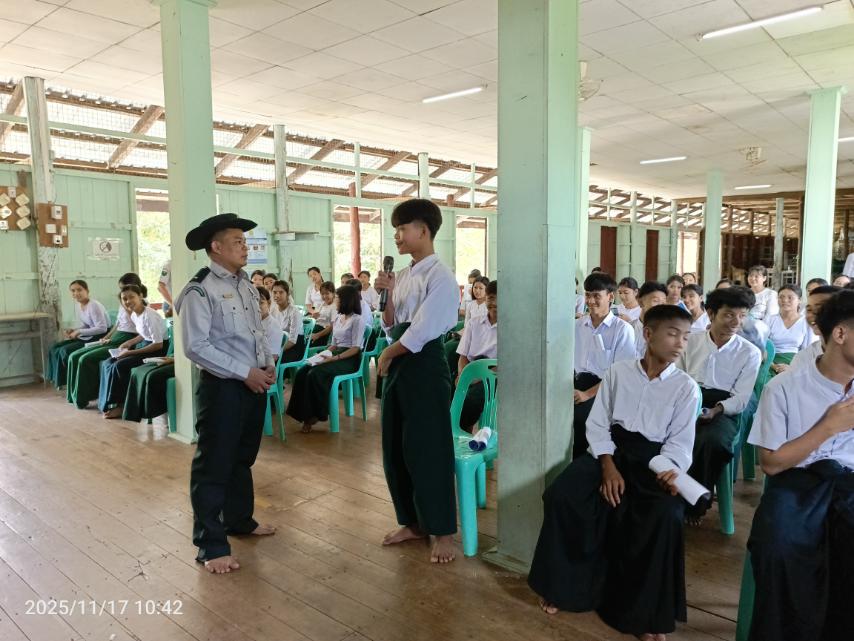 ဆက်လက်၍ ဟောပြောပွဲအခမ်းအနားသို့ တက်ရောက်လာကြသည့် ကျောင်းသား၊ ကျောင်းသူများက သိလိုသည်များ မေးမြန်းခြင်းကို ပြန်လည်ဖြေကြားခဲ့ပြီး အ.ထ.က(တနင်္သာရီ) ကျောင်းစာကြည့်တိုက်အတွက် သစ်တောကြေးမုံစာစောင်များ လှူဒါန်းခဲ့ကြောင်း သိရှိရသည်။