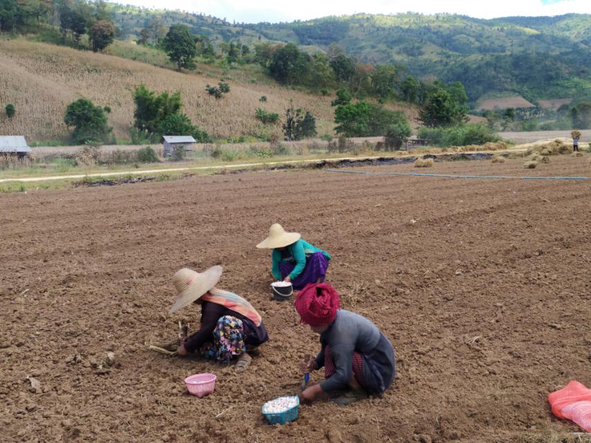 ရှမ်းပြည်နယ်(တောင်ပိုင်း)၊ တောင်ကြီးခရိုင်၊ ကျောက်တလုံးကြီးမြို့၌ မိုးစပါးရိတ်သိမ်းပြီး၍ လယ်မြေများတွင် ဆောင်းသီးနှံဖြစ်သော ကြက်သွန်ဖြူကို စိုက်ပျိုးလျက်ရှိကြောင်း သိရှိရသည်။
