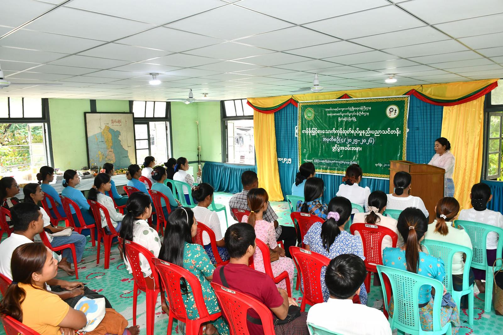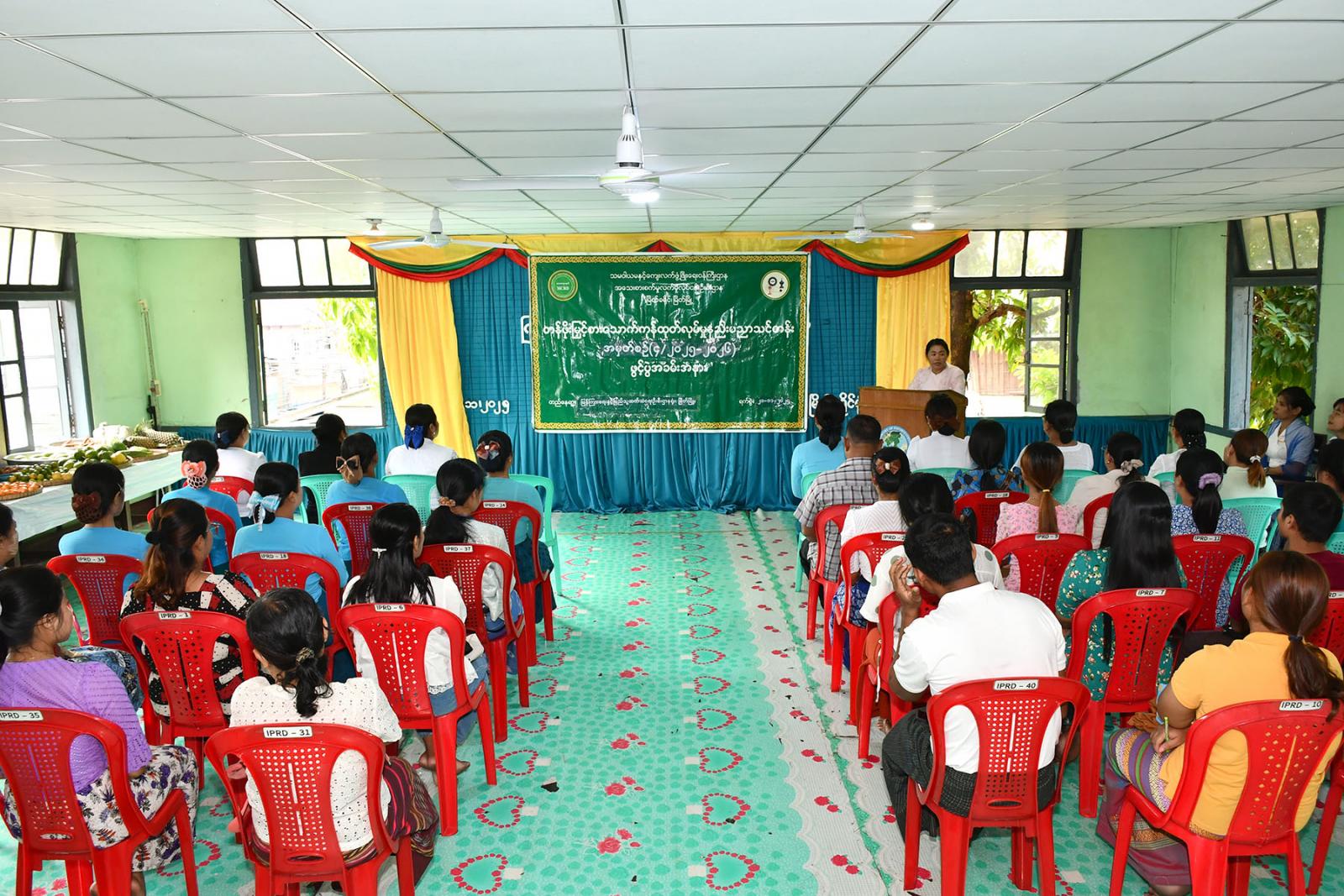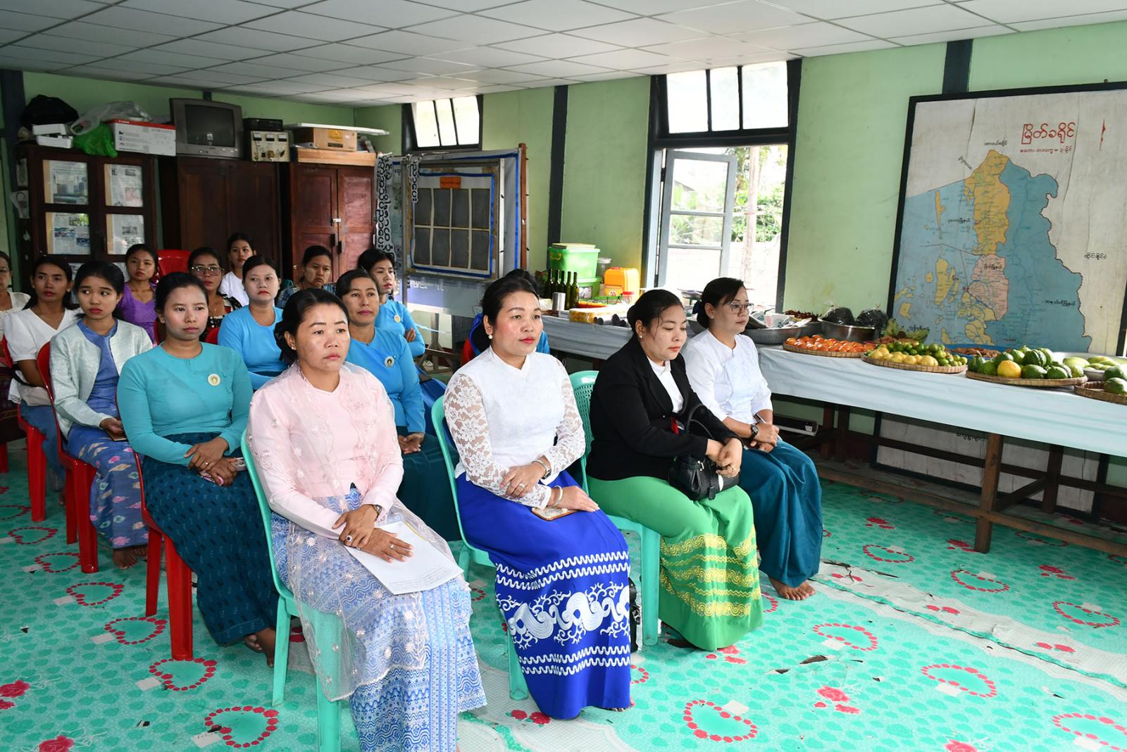 ထို့နောက် မြို့နယ်အမျိုးသမီးရေးရာအဖွဲ့ဥက္ကဋ္ဌ ဒေါ်သီသီအောင်က သင်တန်းသင်ထောက်ကူပစ္စည်းများကို သင်တန်းသူများအား ပေးအပ်သည်။ သင်တန်းဖွင့်ပွဲအပြီးတွင် တက်ရောက်လာကြသူများက သင်တန်းသင်ထောက်ကူပစ္စည်းများအား ကြည်ရှုအားပေးကြသည်။