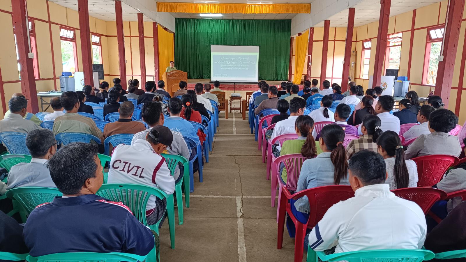 ရှေးဦးစွာ ခရိုင်စီမံခန့်ခွဲရေးနှင့်အုပ်ချုပ်ရေးကော်မတီဥက္ကဋ္ဌ၊ ခရိုင်အုပ်ချုပ်ရေးမှူး ဦးနေထွန်းအောင်က အဖွင့်အမှာစကားပြောကြားသည်။ ထို့နောက် ခရိုင်ရွေးကောက်ပွဲကော်မရှင်အဖွဲ့ခွဲရုံး ဦးစီးအရှာရှိ ဒေါ်အေးစီတာက မြန်မာ့အီလက်ထရောနစ်မဲပေးစက်(MEVM)ဆိုင်ရာ ကိုင်တွယ်အသုံးပြုပုံများနှင့် မဲပေးပုံအဆင့်ဆင့်များကို ရှင်းလင်းဆွေးနွေးပြောကြားခဲ့သည်။