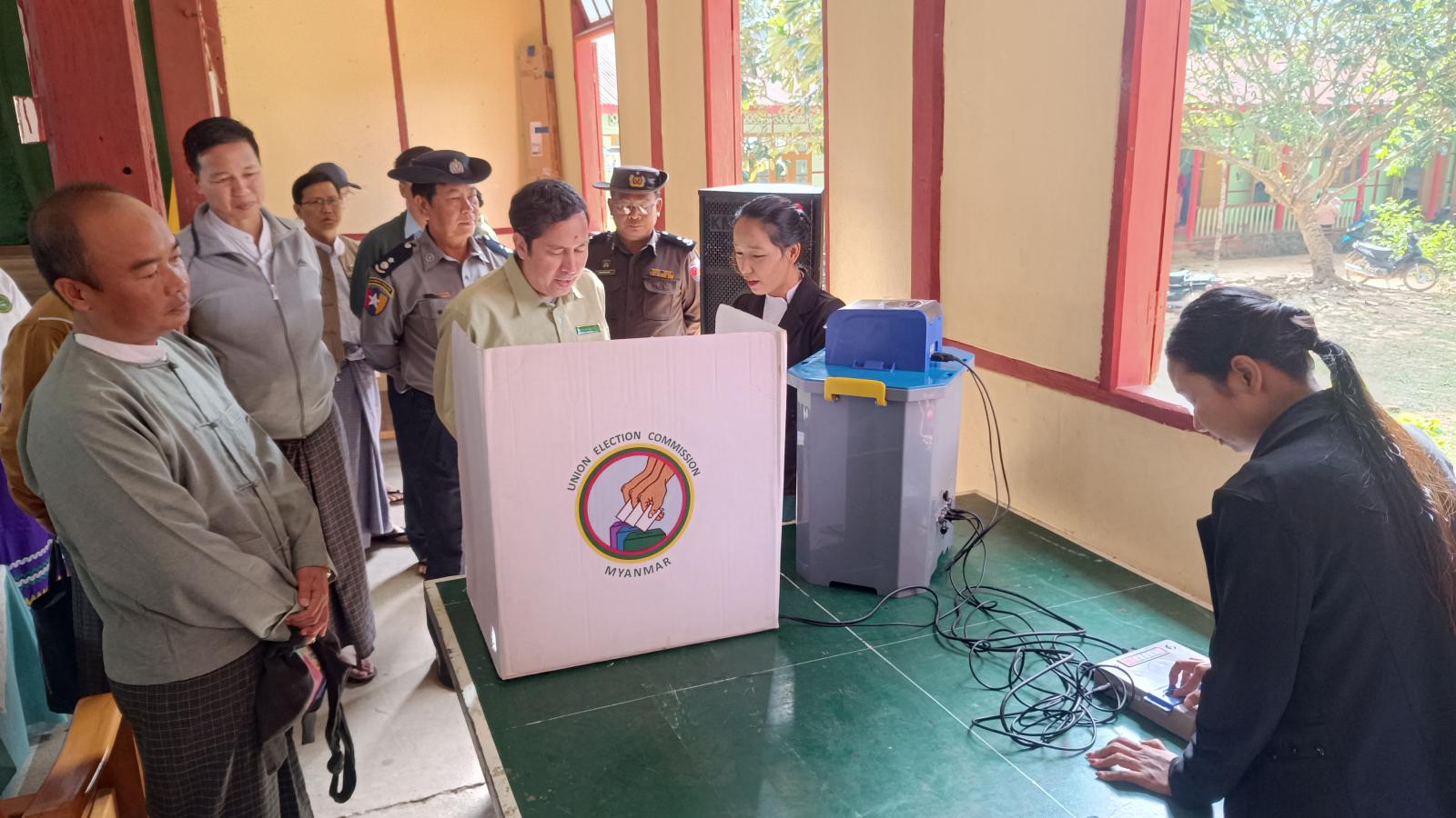 ယင်းနောက် အခမ်းအနားသို့တက်ရောက်လာကြသော ခရိုင်/မြို့နယ်စီမံခန့်ခွဲရေးနှင့် အုပ်ချုပ်ရေးကော်မတီဥက္ကဋ္ဌနှင့်အဖွဲ့ဝင်များ၊ ခရိုင်/မြို့နယ်ရွေးကောက်ပွဲကော်မတီဥက္ကဋ္ဌနှင့် အဖွဲ့ဝင်များ၊ ခရိုင်/မြို့နယ်ဌာနဆိုင်ရာများ မြန်မာ့အီလက်ထရောနစ်မဲပေးစက် (MEVM) အသုံးပြု၍ လက်တွေ့စမ်းသပ်မဲပေးခဲ့ကြောင်း သိရသည်။