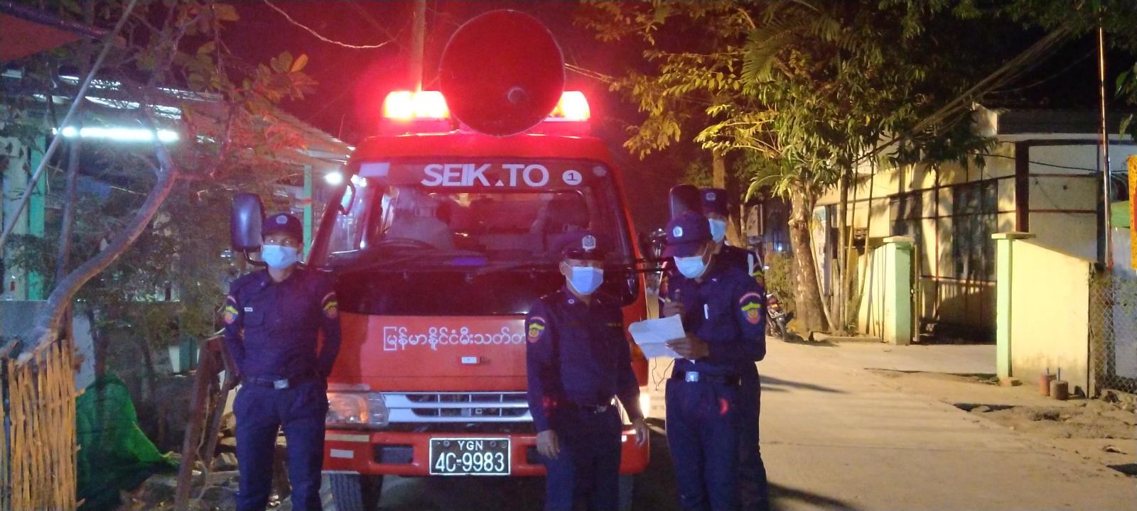 ရန်ကုန်တောင်ပိုင်းခရိုင်၊ ဆိပ်ကြီးခနောင်တိုမြို့နယ်အတွင်း ကိုဗစ်-၁၉ ရောဂါ ကာကွယ်၊ ထိန်းချုပ်ရေး လမ်းညွှန်ချက်များနှင့် မီးဘေးအန္တရာယ် ကြိုတင်ကာကွယ်ရေး အသိပေး နှိုးဆော်ခြင်းကို ယမန်နေ့ ညပိုင်းက မြို့နယ်မီးသတ်ဦးစီးဌာနမှ မြို့နယ်ရပ်ကွက်များအတွင်း အသံချဲ့စက်ဖြင့် လိုက်လံ အသိပေး နှိုးဆော်လျက်ရှိသည်။