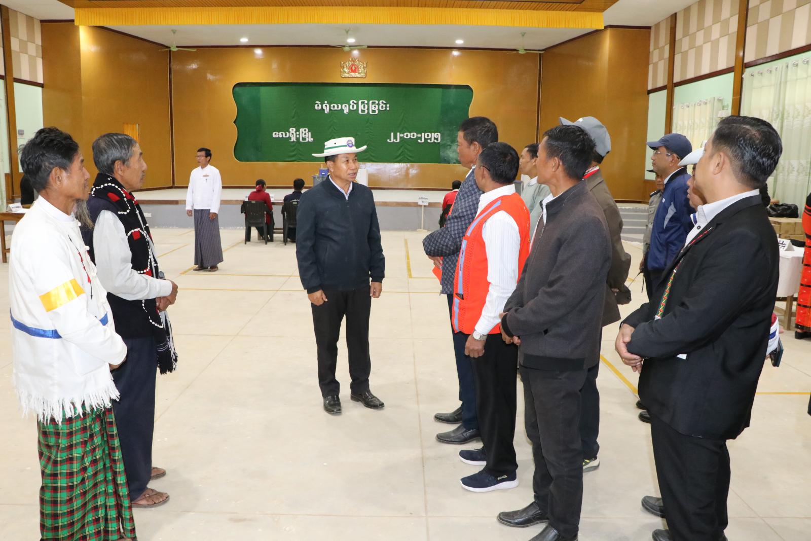ဆက်လက်၍ တိုင်းဒေသကြီးဝန်ကြီးချုပ်နှင့်တာဝန်ရှိသူများသည် လေရှီးမြို့၊ မြို့တော်ခန်းမတွင် ကျင်းပပြုလုပ်သည့် နာဂကိုယ်ပိုင်အုပ်ချုပ်ခွင့်ရဒေသ လေရှီးမြို့ရှိ ဒေသခံတိုင်းရင်းသားများနှင့် ပြည်သူများ ၂၀၂၅ ခုနှစ်၊ ပါတီစုံဒီမိုကရေစီအထွေထွေရွေးကောက်ပွဲကြီးတွင် လွတ်လပ်စွာ ဆန္ဒမဲပေးနိုင်ရေးအတွက် MEVM မဲပေးစက်အသုံးပြု၍ ဆန္ဒမဲပေးနိုင်ရန်အတွက် စမ်းသပ်သရုပ်ပြဆန္ဒမဲပေးနေမှုများအား ကြည့်ရှုအားပေးခဲ့ကြပြီး လိုအပ်သည်များကို တာဝန်ရှိသူများနှင့် ဖြည့်ဆည်းပေါင်းစပ်ဆောင်ရွက်ပေးခဲ့ပြီး မဲရုံမှူးနှင့်အဖွဲ့ဝင်များအား ရင်းရင်းနှီးနှီး နှုတ်ဆက် ခဲ့ကြသည်။