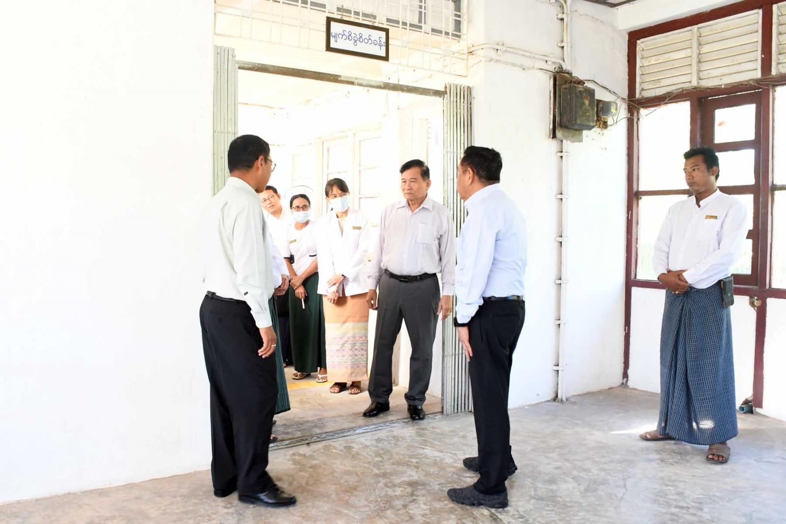 ထို့နောက်တိုင်းဒေသကြီးဝန်ကြီးချုပ်က ပြည်သူ့ဆေးရုံကြီးရှိမျက်စိဆောင်တွင် မျက်စိဝေဒနာရှင်များ အဆင်ပြေစွာ ကုသနိုင်ရန်အတွက် မျက်စိခွဲစိတ်ခန်းပြုပြင်မွမ်းမံနေမှုအား ကြည့်ရှုစစ်ဆေးပြီး လျှပ်စစ်မီးလုံလောက်စွာဆောင်ရွက်ပေးရန်လိုအပ်ကြောင်းနှင့် လိုအပ်သည်များကို သက်ဆိုင်ရာတာဝန်ရှိသူများနှင့် ညှိနှိုင်းဆောင်ရွက်ပေးသည်။