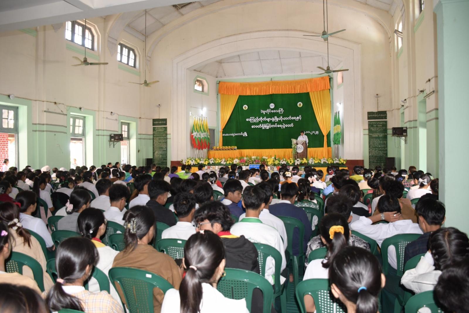 ဆက်လက်၍ အခမ်းအနားအား အဆိုပါကျောင်းပင်လုံခန်းမ၌ ကျင်းပရာ အမှတ် (၄) အခြေခံပညာအထက်တန်းကျောင်းမှ ကျောင်းသားကျောင်းသူများက “ ပညာဘဏ်တိုက် စာကြည့်တိုက်သို့ သွားကြစို့” သီချင်းဖြင့် သီဆိုဖျော်ဖြေကြပြီး ပဲခူးတိုင်းဒေသကြီးအစိုးရအဖွဲ့ လူမှုရေးရာဝန်ကြီး ဦးမျိုးအောင်က အမှာစကားပြောကြားရာတွင် ကျောင်းစာကြည့်တိုက်များ ဖွံ့ဖြိုးတိုးတက်ရေးနှင့် စာဖတ်ရှိန်မြှင့်တင်ရေးပွဲတော်များကို တစ်နိုင်ငံလုံးအတိုင်းအတာဖြင့် အခြေခံပညာကျောင်းများကို အခြေခံ၍ ကျင်းပလျက်ရှိပြီး ကျောင်းသားလူငယ်များ နိုင်ငံ့အနာဂတ်လူ့စွမ်းအားအရင်းအမြစ်ပြုစုပျိုးထောင်မှုများ အရှိန်အဟုန်မြင့်မားလာစေရန်၊ စာအုပ်စာပေ၌ နှစ်သက်မွေ့လျော်ကာ စာဖတ်သည့် ဓလေ့၊ စာကြည့်တိုက်များသို့ သွားလာသည့် အလေ့အကျင့်များဖြစ်လာစေရန်၊ စာဖတ်ခြင်းကို တန်ဖိုးထားကာ ဉာဏ်ပညာအတွေးအခေါ်မြင့်မားရေး၊ ဗဟုသုတပြည့်စုံကြွယ်ဝရေးတို့အတွက် စာတတ်သူတိုင်း စာဖတ်ကြရန်၊ ပညာဗဟုသုတပြည့်ဝ၍ အနာဂတ်တွင် တိုင်းပြည်အတွက် ဦးဆောင်ဦးရွက် ပြုနိုင်သူများ ဖြစ်လာစေရန်ဟူသော ရည်ရွယ်ချက်များဖြင့် ကျင်းပဆောင်ရွက်ခြင်းဖြစ်ကြောင်း၊