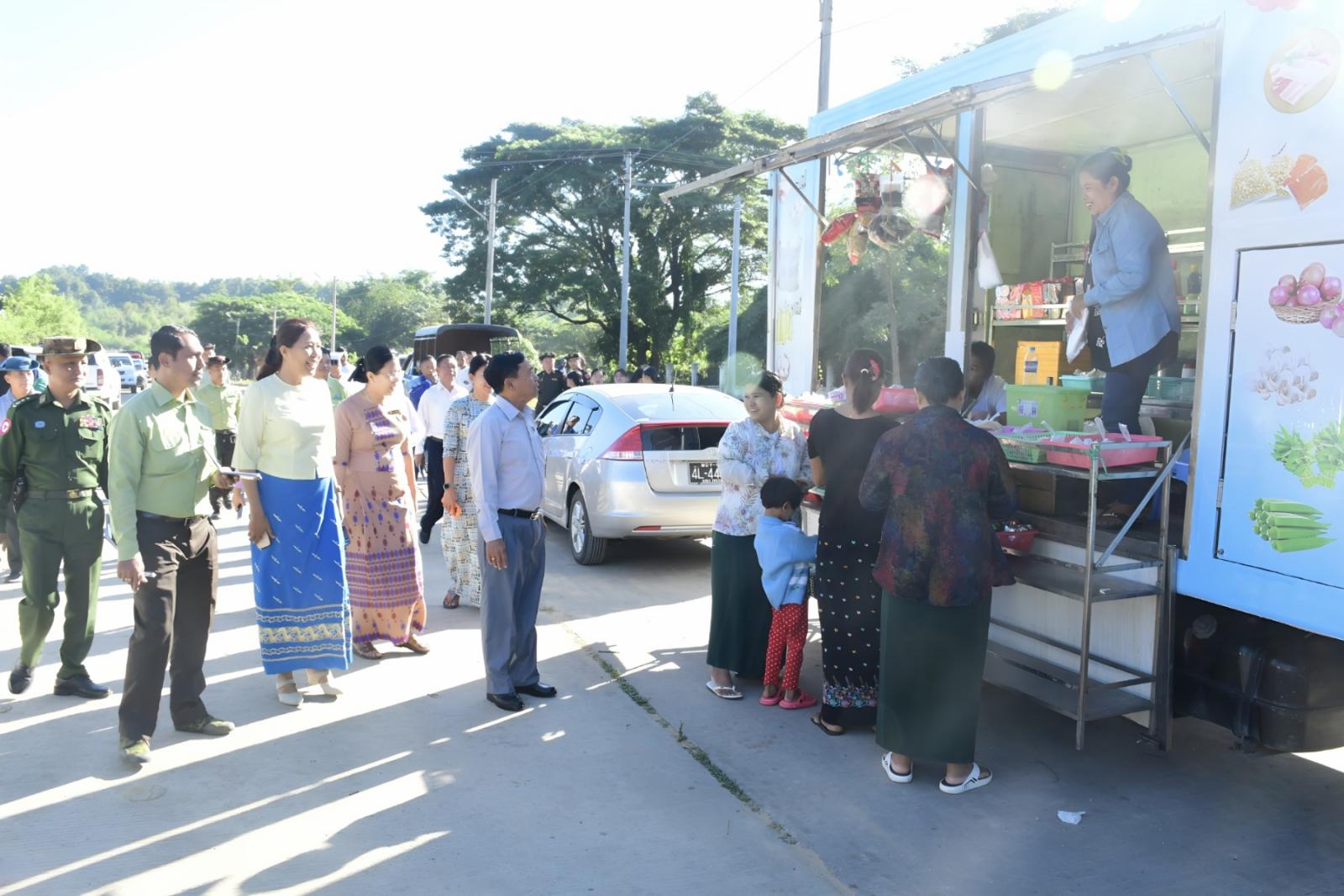ကြည့်ရှုစစ်ဆေးစဉ် နေပြည်တော်ကောင်စီဥက္ကဋ္ဌ ဦးသန်းထွန်းဦးက တာဝန်ရှိသူများအား ဆေးရုံဥပဓိရုပ်ကောင်းမွန်စေရန်ဆေးရုံဝန်းအတွင်း/အပြင် သန့်ရှင်းသာယာလှပစေရေး စဉ်ဆက်မပြတ်ဆောင်ရွက်ရန်နှင့် ရေစီးရေလာကောင်းမွန်စေရေး ရေမြောင်းများတွင် အမှိုက်များ ပိတ်ဆို့မှုမရှိစေရေး ကြပ်မတ်ဆောင်ရွက်ရန်၊ မှာကြားခဲ့ပြီး သန့်ရှင်းရေးလာရောက်ပြုလုပ် ဆောင်ရွက်သည့်ဌာနဆိုင်ရာ ဝန်ထမ်းများနှင့် ပြည်သူများအား ဆန်နှင့်စားအုံးဆီများ၊ အသား၊ ငါး၊ ကြက်ဥနှင့် ဟင်းသီးဟင်းရွက်များကို သတ်မှတ်ရည်ညွှန်းဈေးနှုန်းဖြင့် ရောင်းချနေမှု အခြေအနေတို့အား ကြည့်ရှုအားပေးခဲ့ကြောင်း သိရသည်။