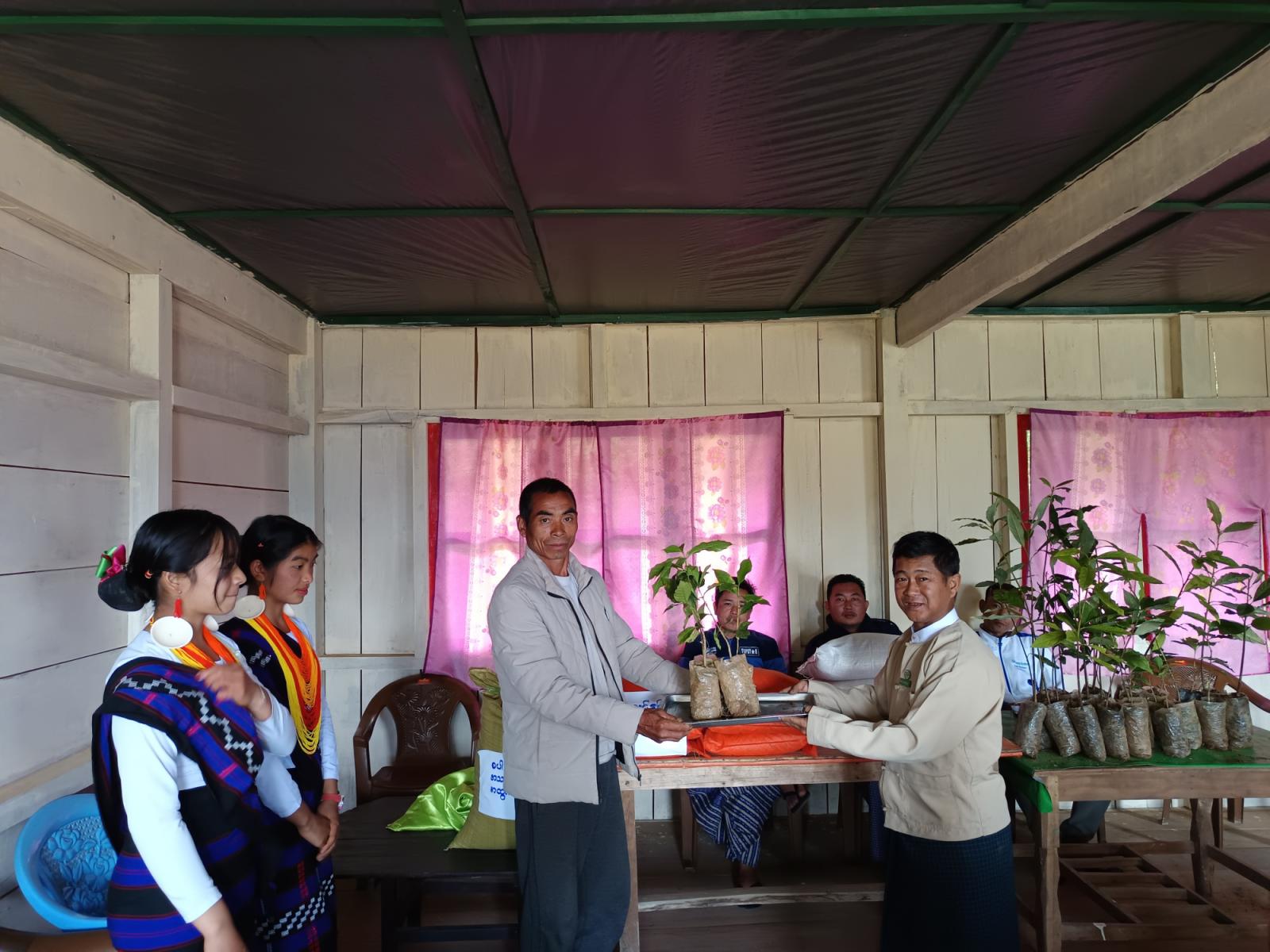 ရှေးဦးစွာ ထန်ပါခွေမြို့စိုက်ပျိုးရေးဦးစီးဌာန မြို့ဦးစီးမှူး ဉီးအောင်မင်းသူက စိုက်ပျိုးရေးနှင့်ပတ်သက်သည့် နည်းလမ်းကောင်းများအား ဒေသခံတောင်သူများကိုရှင်းလင်းပြောကြားပြီးနောက် မြို့အုပ်ချုပ်ရေးမှူး ဦးဖြိုးဇော်ဦးနှင့် ဌာနဆိုင်ရာတာဝန်ရှိသူများက အစေ့ထုပ်ပြောင်း (၅)ကီလို၊ စပါး (၈) တင်း၊ နေကြာ (၃) ကီလို၊ ထောပတ် (၂၅)ပင်၊ ကော်ဖီ (၁၅၀၀)ပင်နှင့် လက်ဖက် (၂၅)ပင်တို့အား ဒေသခံတောင်သူများအား အသီးသီးပေးအပ်ခဲ့ကြောင်း သိရသည်။