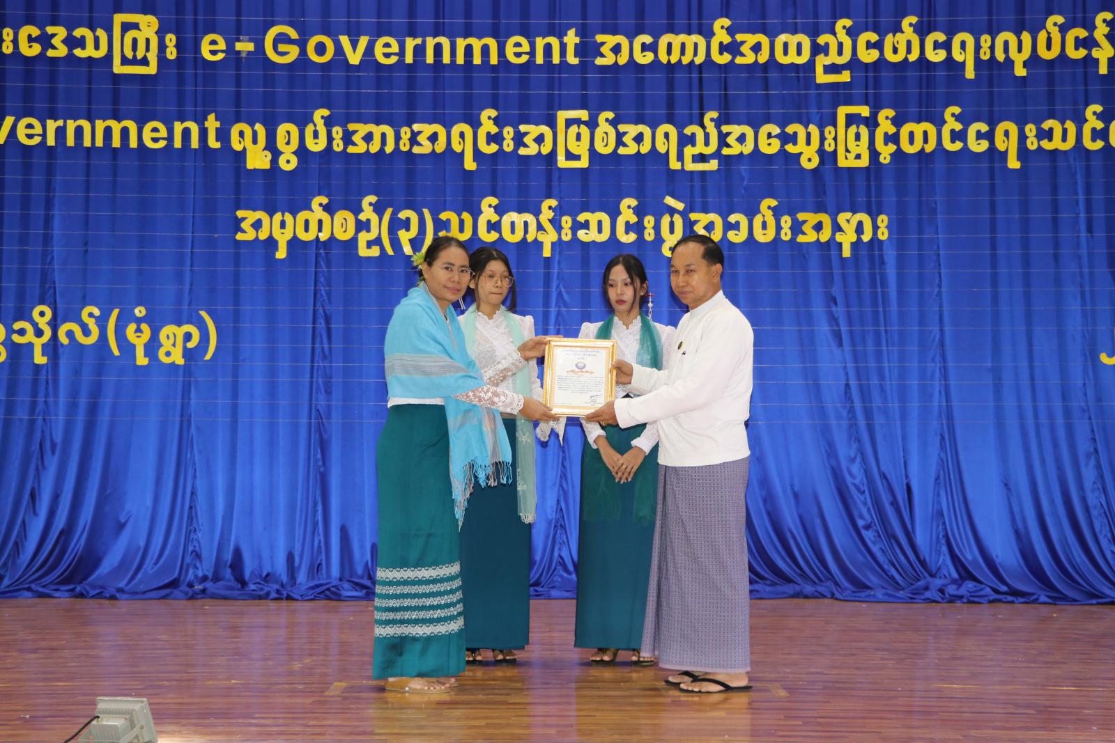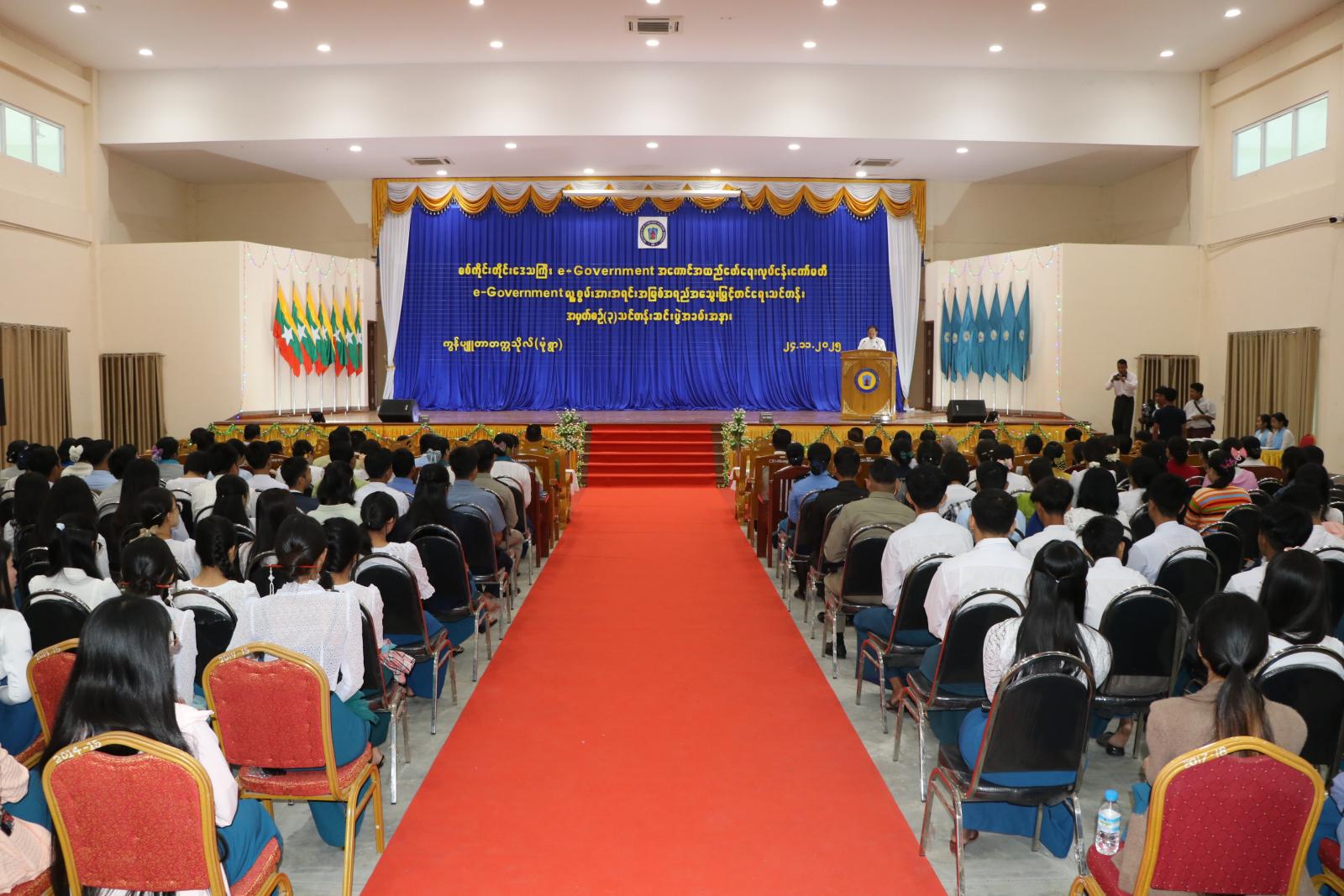 စစ်ကိုင်းတိုင်းဒေသကြီး e-Government စနစ် အကောင်အထည်ဖော်ရေးလုပ်ငန်း ကော်မတီမှ ကြီးမှူးဖွင့်လှစ်သည့် e-Government လူ့စွမ်းအားအရင်းအမြစ် အရည် အသွေးမြှင့်တင်ရေးသင်တန်း အပတ်စဉ်(၃) ဆင်းပွဲအခမ်းအနားသို့ နိုဝင်ဘာလ ၂၄ ရက်၊ နံနက်ပိုင်းတွင် ကွန်ပျူတာတက္ကသိုလ်(မုံရွာ)ရှိ ဘွဲ့နှင်းသဘင်ခန်းမတွင် ကျင်းပပြုလုပ်ရာ အခမ်းအနားသို့ တိုင်းဒေသကြီး e-Government စနစ် အကောင်အထည်ဖော်ရေး လုပ် ငန်းကော်မတီ နာယက၊ တိုင်းဒေသကြီး ဝန်ကြီးချုပ် ဦးမြတ်ကျော်၊ တိုင်းဒေသကြီးအစိုး ရအဖွဲ့ဝင်များ၊ တိုင်းဒေသကြီး/ခရိုင်/မြို့နယ်အဆင့် ဌာနဆိုင်ရာများ၊ ကွန်ပျူတာတက္က သိုလ်(မုံရွာ)မှ ပါမောက္ခချုပ်နှင့် ဆရာ၊ဆရာမများ၊ သင်တန်းသား၊သင်တန်းသူများ တက် ရောက်ကြသည်။