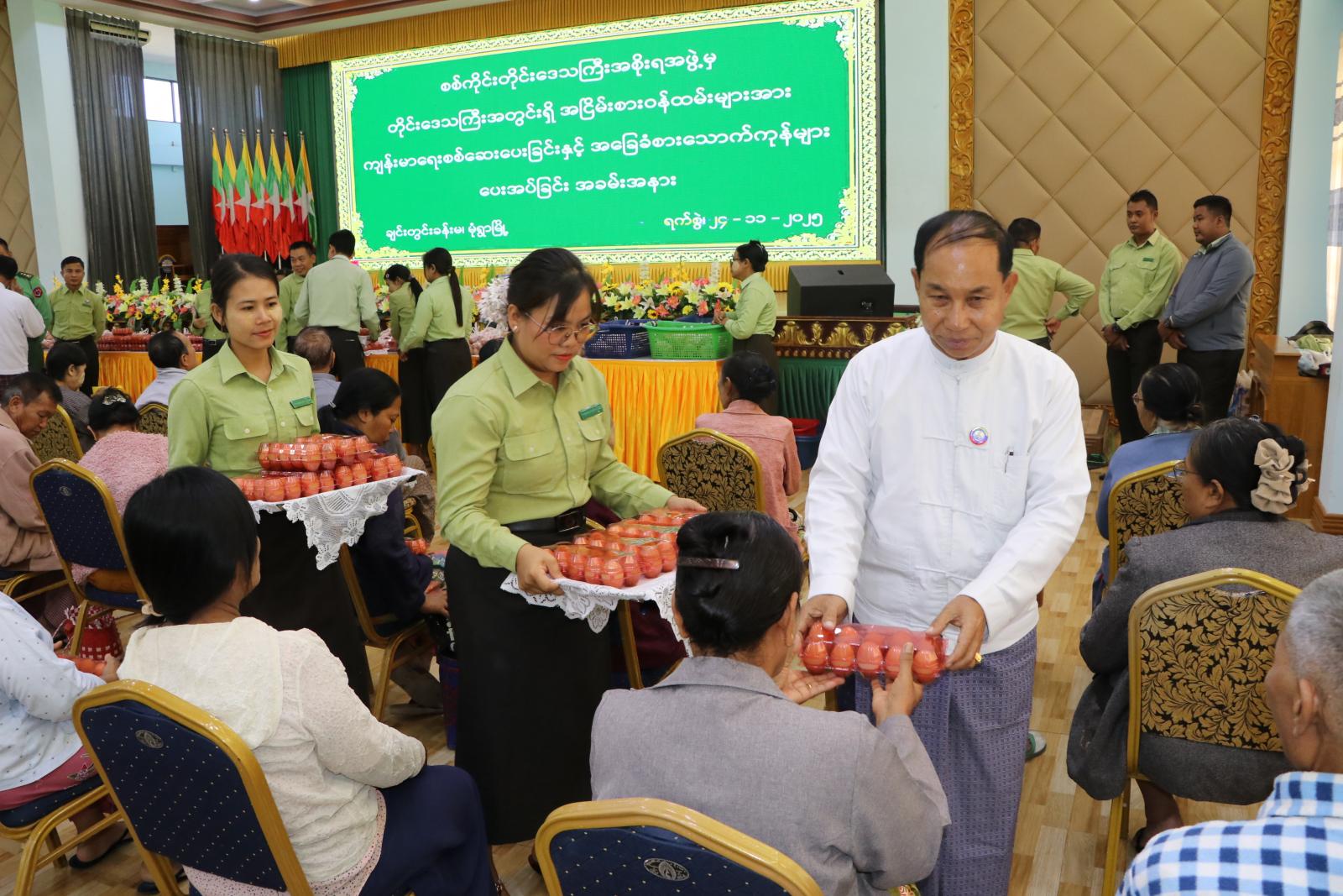 ထို့နောက် တိုင်းဒေသကြီး ဝန်ကြီးချုပ်နှင့် တာဝန်ရှိသူများသည် တိုင်းဒေသကြီးအတွင်းရှိ အငြိမ်းစားဝန်ထမ်းများအား ကျန်းမာရေးစစ်ဆေးပေးခြင်းနှင့် အခြေခံစားသောက်ကုန်များ ပေးအပ်ခြင်း အခမ်းအနားသို့ တက်ရောက်ကြသည်။