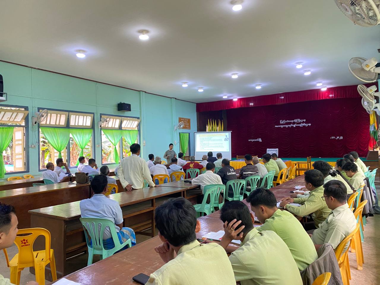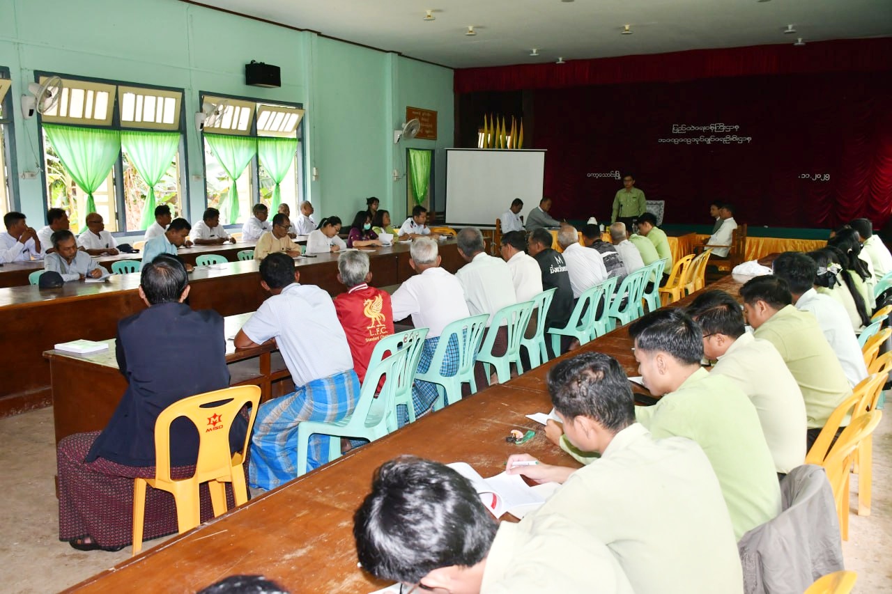 သင်တန်းတွင် မြို့နယ်စီမံခန့်ခွဲရေးနှင့်အုပ်ချုပ်ရေးကော်မတီဥက္ကဋ္ဌဦးနိုင်လင်းထက်က ၂၀၂၅ခုနှစ်ပါတီစုံအထွေထွေရွေးကောက်ပွဲအောင်မြင်စွာကျင်းပနိုင်ရေးနှင့်ပတ်သက်၍ အမှာစကားပြောကြားခဲ့ပြီးခရိုင်နှင့်မြို့နယ်ရွေးကောက်ပွဲအရာရှိများက မြို့နယ်အတွင်းရှိ ရပ်ကွက်၊ ကျေးရွာ ကော်မရှင်အဖွဲ့ခွဲများအား "ပြည်ထောင်စုရွေးကောက်ပွဲကော်မရှင်မှ ၂၀၂၅ ခုနှစ် ဩဂုတ်လ(၇)ရက်အထိ လွှတ်တော်ရွေးကောက်ပွဲနှင့်အညီ ပြင်ဆင်ထားသည့် ရပ်ကွက်/ကျေးရွာကော်မရှင်အဖွဲ့ခွဲလုပ်ငန်းလမ်းညွှန်"စာအုပ်ပါ သိသင့်သိထိုက်သည်များ ရှင်းလင်းပြောကြားခဲ့ကြောင်းသိရသည်။