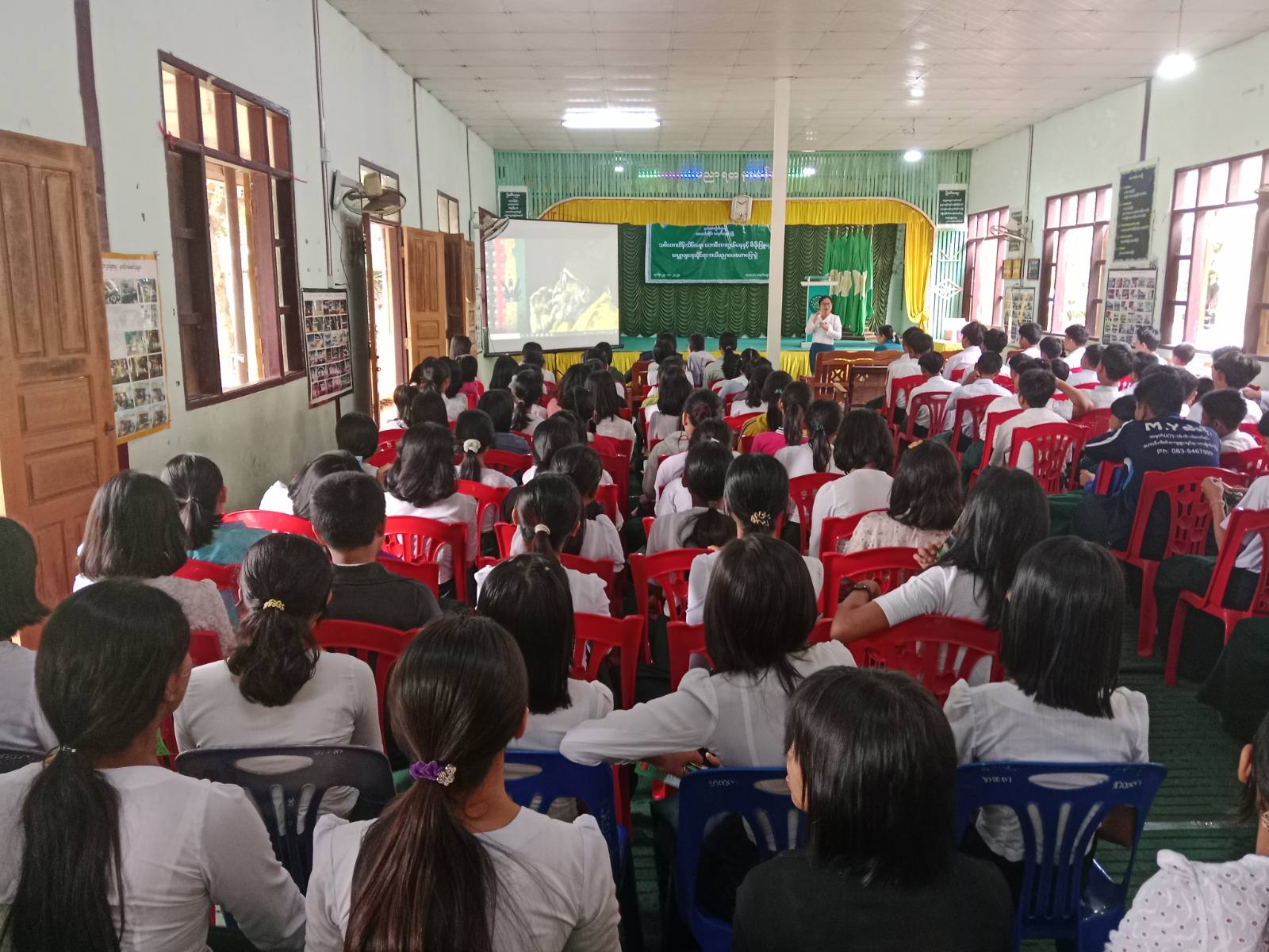 အခမ်းအနားတွင် သရက်ချောင်းမြို့နယ်၊ သစ်တောဦးစီးဌာနမှ မြို့နယ်တာဝန်ခံ တောအုပ် ဦးသက်နိုင်ဦးက ကျောင်းသား/သူများအား သစ်တောသစ်ပင်ပြုစုထိန်းသိမ်းရေးဆိုင်ရာလုပ်ငန်းများ၊ မီးခိုးမြူငွေ့ဖြစ်ပေါ်လာသည့်အချက်များ၊ မီးခိုးမြူငွေ့အမျိုးအစားများ၊ မီးခိုးမြူငွေ့၏ဆိုးကျိုးများ၊ ကာကွယ်နိုင်သည့် နည်းလမ်းများ၊ တောမီးအန္တရာယ်နှင့် ကြိုတင်ကာကွယ်နိုင်ရေးနည်းလမ်းများနှင့် သစ်ပင်စိုက်ပျိုးပြုစုထိန်းသိမ်းခြင်းကြောင့် ရာသီဥတု ကောင်းမွန်လာစေခြင်း အကျိုးကျေးဇူးများကို အသိပညာပေး ဟောပြောခဲ့ပြီးနောက် အဆိုပါဟောပြောချက်များနှင့် ပတ်သက်၍ ကျောင်းသား/သူများက သိရှိလိုသည်များကို မေးမြန်းကြရာ မြို့နယ်သစ်တောဦးစီးဌာနမှ မြို့နယ်တာဝန်ခံ တောအုပ်ဦးသက်နိုင်ဦးက ပြန်လည်ရှင်းလင်းဆွေးနွေးပေးခဲ့သည်။