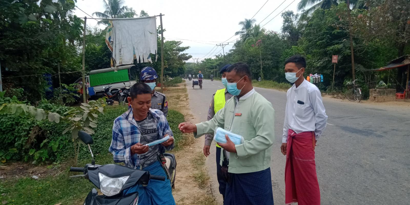 ကိုဗစ်-၁၉ ရောဂါ ကူးစက်ပြန့်ပွားမှု မရှိစေရေးအတွက် နေအိမ်ပြင်ပသို့ ထွက်ခွာတိုင်း နှာခေါင်းစည်း Mask တပ်ဆင်သည့် အလေ့အကျင့် ကောင်းများ ရရှိစေရန် ရည်ရွယ်၍ ယနေ့ နံနက် ၈ နာရီက ရန်ကုန်တိုင်းဒေသကြီး၊ ကော့မှူးမြို့နယ်တွင် လူစည် ကားရာနေရာ များဖြစ်သော ဗိုလ်ချုပ်လမ်းမကြီးပေါ်တွင် အဖွဲ့များ ခွဲ၍ နှာခေါင်းစည်း Mask မတပ်ဆင် ဘဲသွားလာနေသူများကို နှာခေါင်းစည်း Mask များ အခမဲ့ဖြန့်ဝေပေးပြီး အသိပညာပေးမှုများ အရှိန်အဟုန်မြှင့် ဆောင်ရွက်နေကြောင်း သိရသည်။