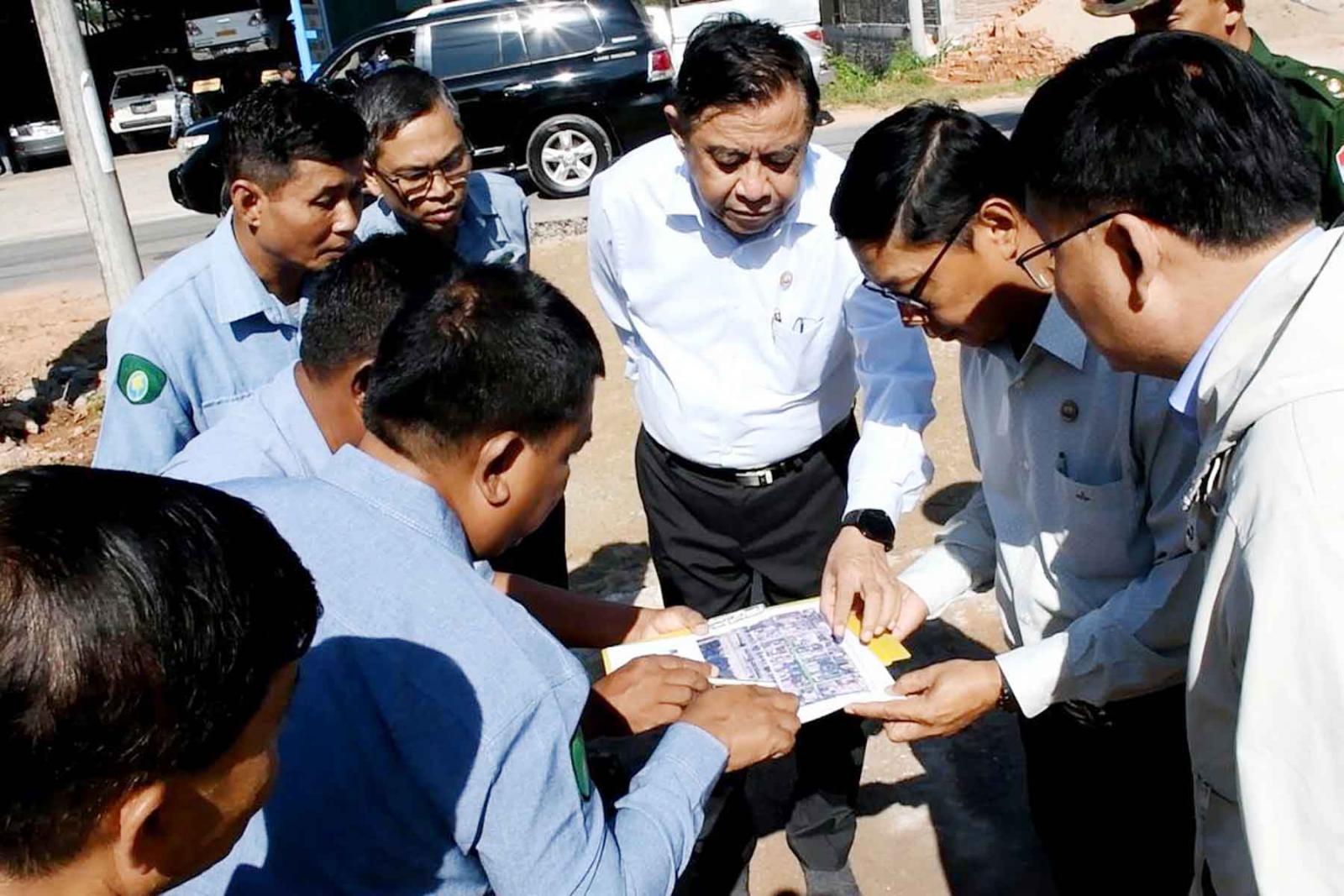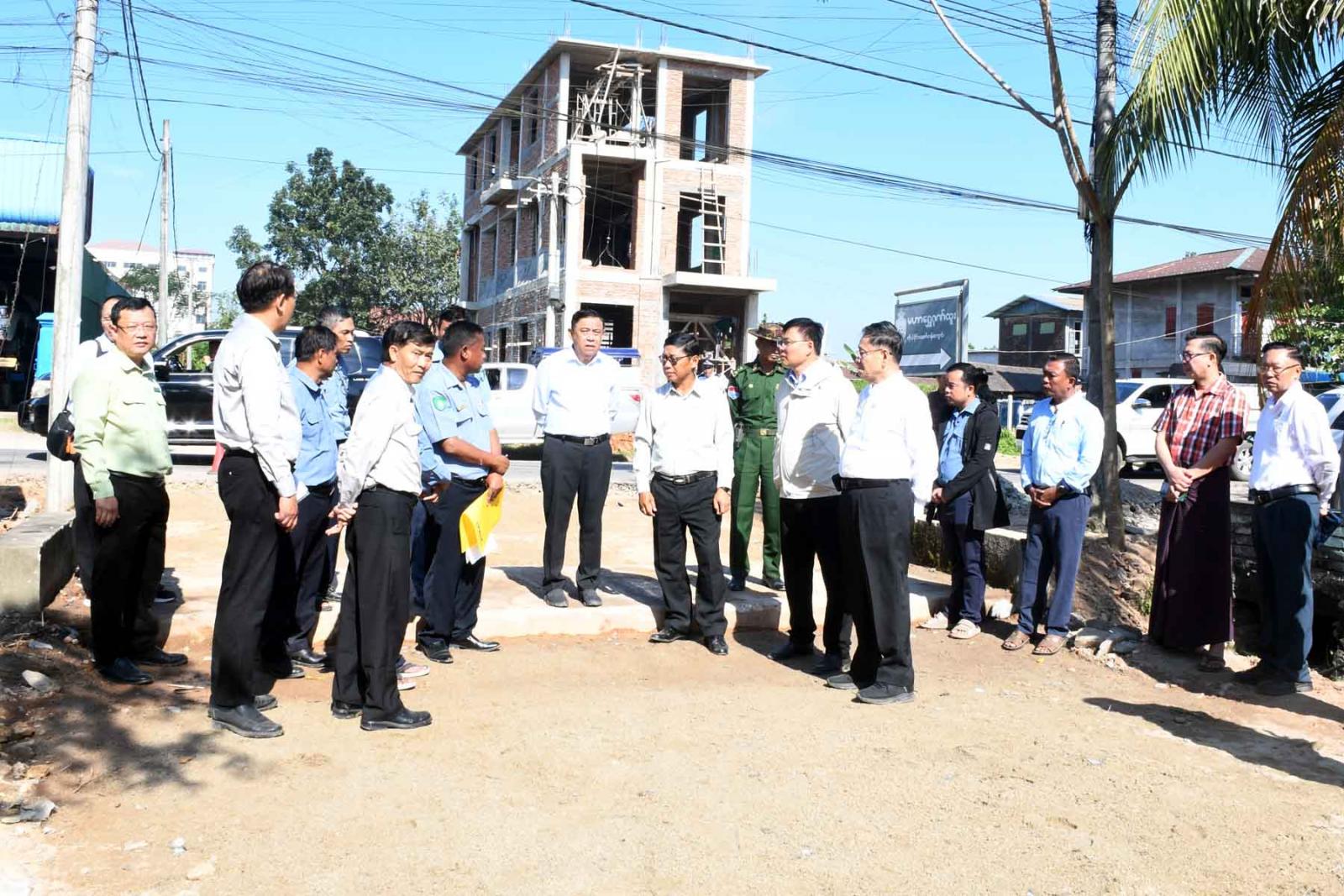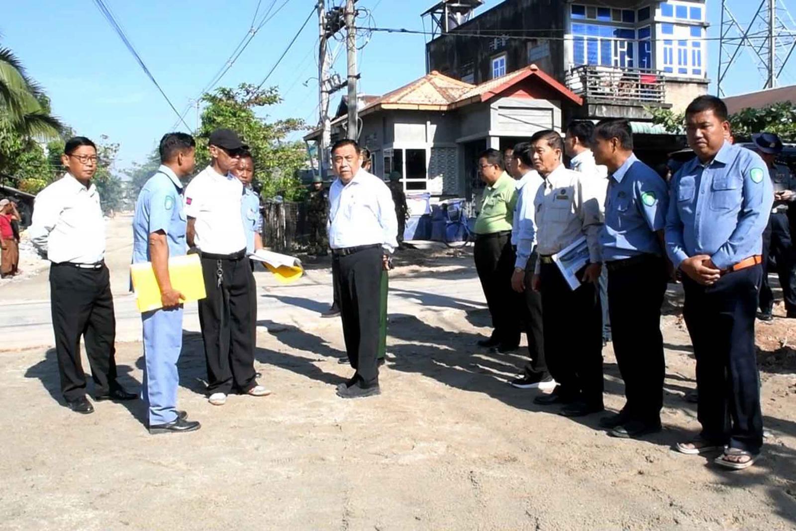 ထို့နောက် တိုင်းဒေသကြီးဝန်ကြီးချုပ်က ဗျောတောဝရပ်ကွက် မျှောအင်းလမ်းသွယ်( ၉၅၀ ပေ × ၁၂ ပေအကျယ်) ကွန်ကရစ်ခင်းခြင်းလုပ်ငန်းဆောင်ရွက်နေမှုအား ကြည့်ရှုစစ်ဆေးသည်။