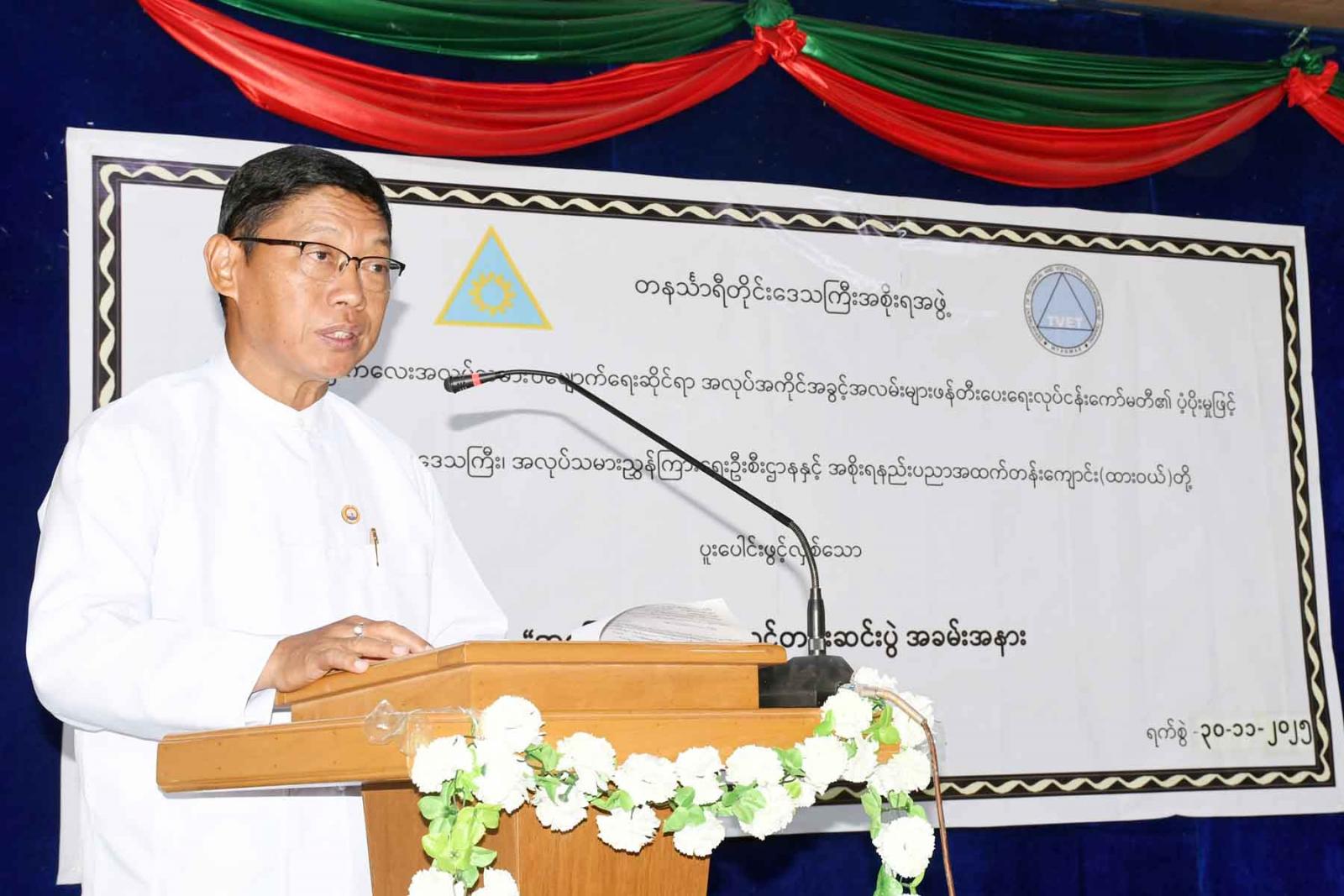 တနင်္သာရီတိုင်းဒေသကြီးအစိုးရအဖွဲ့၏စီမံမှုဖြင့် တိုင်းဒေသကြီး ကလေးအလုပ်သမားပပျောက်ရေးဆိုင်ရာ အလုပ်အကိုင်အခွင့်အလမ်းများဖန်တီးပေးရေး လုပ်ငန်းကော်မတီက ကျင်းပပြုလုပ်သော အခြေခံစက်ချုပ်သင်တန်းဆင်းပွဲအခမ်းအနားကို ယနေ့နံနက် ၉ နာရီ က ထားဝယ်မြို့၊ အစိုးရနည်းပညာအထက်တန်းကျောင်းခန်းမ၌ ကျင်းပသည်။