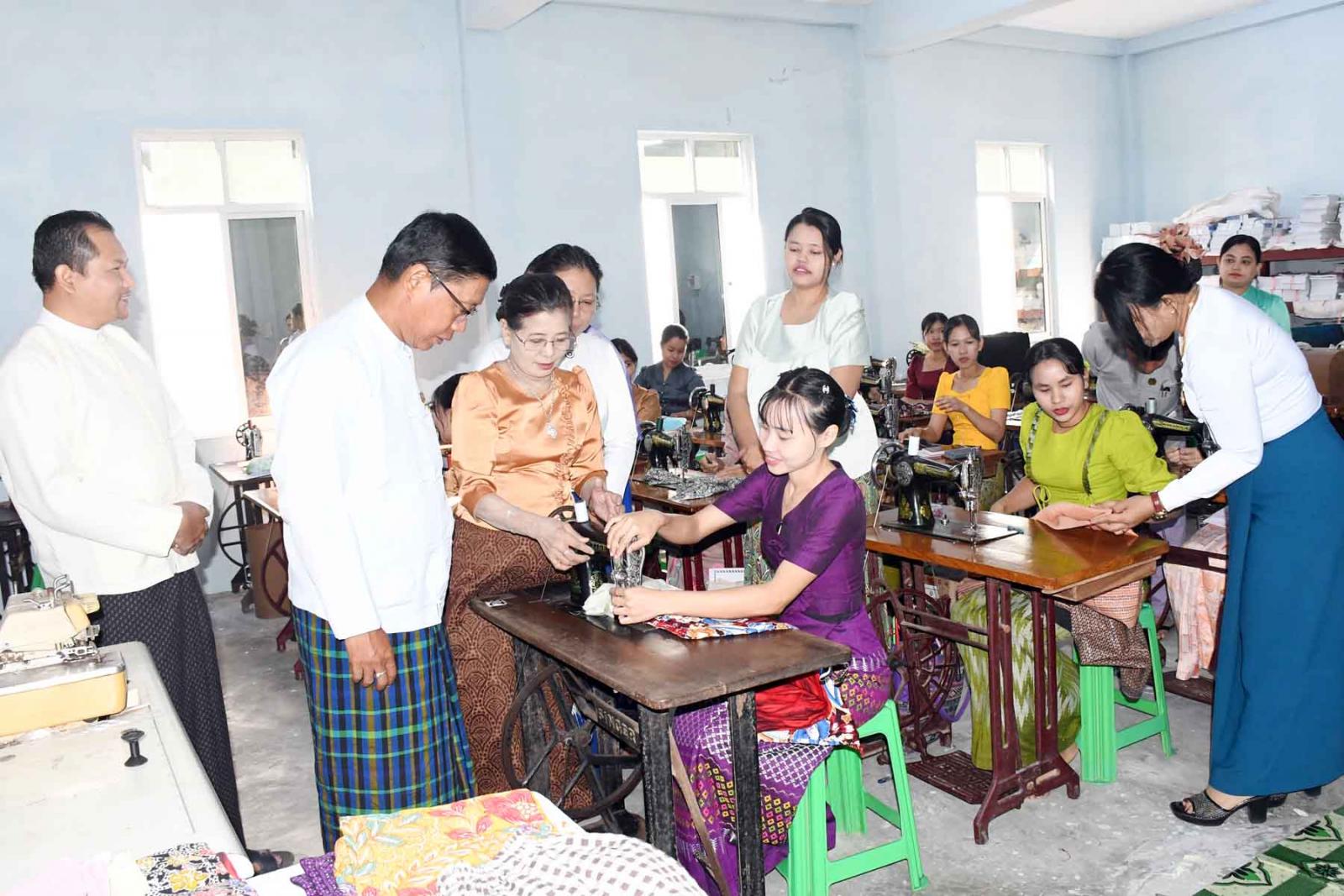 ယင်းနောက် တိုင်းဒေသကြီးလူမှုရေးရာဝန်ကြီး ဦးသက်နိုင်က သင်တန်းသူများ စက်ချုပ်နေမှုနှင့် အဝတ်အထည်များချုပ်လုပ်ထားရှိမှုများအား ကြည့်ရှုအားပေးခဲ့ကြောင်း သတင်းရရှိသည်။