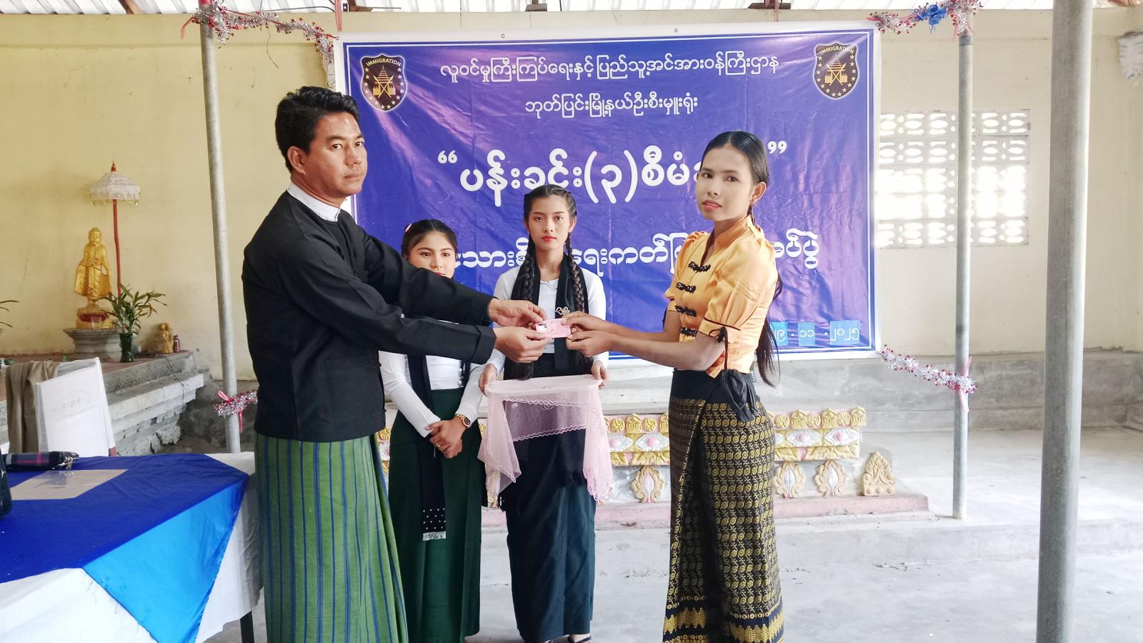 ဆက်လက်၍ ဘုတ်ပြင်းခရိုင်/မြို့နယ်စီမံခန့်ခွဲရေးနှင့် အုပ်ချုပ်ရေးကော်မတီဥက္ကဋ္ဌနှင့်အဖွဲ့ဝင်များ၊ လူဝင်မှုကြီးကြပ်ရေးနှင့်ပြည်သူ့အင်အားဝန်ကြီးဌာန ဘုတ်ပြင်းခရိုင်ဦးစီးမှူးနှင့်တာဝန်ရှိသူများက အလယ်ကျေးရွာအုပ်စုအတွင်း ပန်းခင်း(၃)စီမံချက်ဖြင့် ကွင်းဆင်းဆောင်ရွက်ပေးခဲ့သည့် နိုင်ငံသားစိစစ်ရေးကတ်ပြား(၉၆)ကတ်အား ကာယကံရှင်များလက်ဝယ်အရောက်ပေးအပ်ခဲ့ပြီး အလယ်မန်ကျေးအုပ်စုအုပ်ချုပ်ရေးမှူးက ကျေးဇူးတင်စကား ပြန်လည်ပြောကြားသည်။