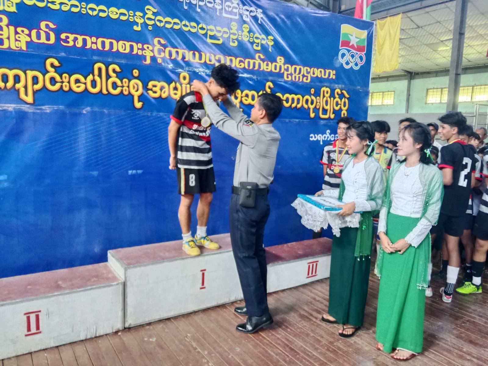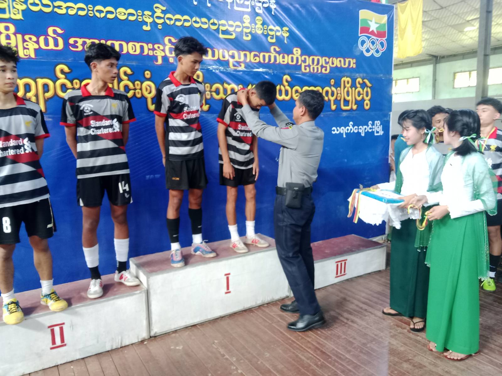 ထို့နောက် အခြေခံပညာကျောင်းပေါင်းစုံ အမျိုးသားဖူဆယ်ဘောလုံးပြိုင်ပွဲ ဆုချီးမြှင့်ပွဲအခမ်းအနားအား ကျင်းပရာ မြို့နယ်စည်ပင်သာယာရေးအဖွဲ့ အမှုဆောင်အရာရှိ ဦးတင်စွမ်က ဂိုးသမားအကောင်းဆုံးကစားသမားဆုရရှိသော (အ-ထ-က) သရက်ချောင်း (ခ) အသင်းမှ မောင်ဒီမင်းဦးအား ဒိုင်းဆုနှင့် ငွေသားဆု ချီးမြှင့်ခြင်း၊ မြို့နယ်စီမံကိန်းရေးဆွဲရေးဦးစီးဌာနမှ လက်ထောက်ညွှန်ကြားရေးမှူး ဒေါ်ခင်မာလာထွန်းက ပွဲစဉ်တစ်လျှောက်အကောင်းဆုံးကစားသမားဆုရရှိသော (အ-ထ-က) သရက်ချောင်း (က) အသင်းမှ မောင်ထင်လင်းဦးအား ဒိုင်းဆုနှင့် ငွေသားဆုချီးမြှင့်ခြင်း၊ ပြိုင်ပွဲတွင် ပထမရရှိသော (အ-ထ-က) သရက်ချောင်း (က) အသင်းနှင့် ဒုတိယရရှိသော (အ-ထ-က) သရက်ချောင်း (ခ) အသင်းတို့မှ အားကစားသမားများအား မြို့နယ်စီမံခန့်ခွဲရေးနှင့် အုပ်ချုပ်ရေးကော်မတီဥက္ကဋ္ဌ ဦးအောင်မြင့်သိန်းနှင့် ကော်မတီဝင်များက တစ်ဦးချင်းလည်ဆွဲဆုများနှင့် ငွေသားဆုများကို လည်းကောင်း၊ ပထမရရှိသော (အ-ထ-က) သရက်ချောင်း (က) အသင်းအား တံခွန်စိုက်ဒိုင်းဆုကိုလည်းကောင်း အသီးသီး ဆုချီးမြှင့်ပေးခဲ့ပြီးနောက် ဆုရရှိသောပြိုင်ပွဲဝင်အသင်းများနှင့် ဌာနဆိုင်ရာတာဝန်ရှိသူများက အမှတ်တရမှတ်တမ်းတင်ဓာတ်ပုံ ရိုက်ကူးခဲ့ကြောင်း သိရသည်။