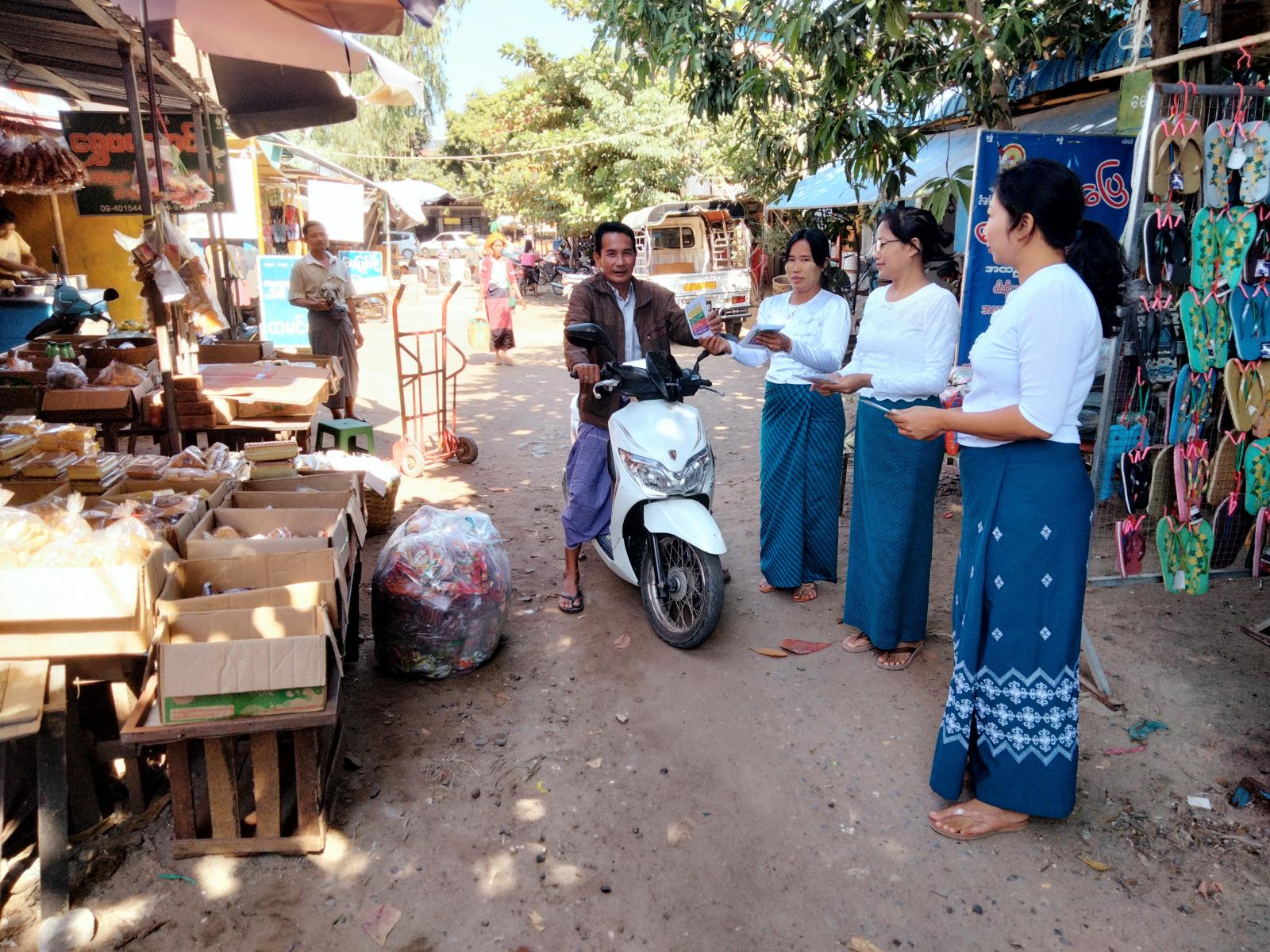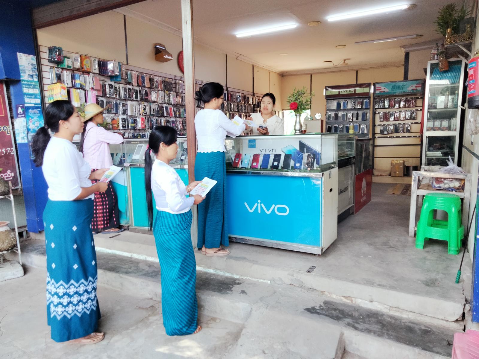 ထိုသို့ဖြန့်ဝေပေးရာတွင် “ဒို့အတူတူမဲပေးကြမယ်”လက်ကမ်းစာစောင်များကို ဈေးသွား၊ဈေးလာပြည်သူများ၊ ဈေးဆိုင်များနှင့် လူစည်ကားသည့် ကားဂိတ်များတွင် မြို့နယ်ပြန်ကြားရေးနှင့်ပြည်သူ့ဆက်ဆံရေးစီးဌာနဦးစီးအရာရှိ ဒေါ်ဥမ္မာခင်နှင့် ဝန်ထမ်းများက ဖြန့်ဝေပေးခဲ့ကြသည်။အဆိုပါလက်ကမ်းစာစောင်တွင် “ဒို့အတူတူမဲပေးကြမယ်” ၊ ရွေးကောက်ပွဲမှသည်ပိုမိုကောင်းမွန်သောအနာဂတ်ဆီသို့၊ ဒီမိုကရေစီကို ပြန်လည်ဖော်ဆောင်ဖို့အတွက် ရွေးကောက်ပွဲမှ လွဲ၍ အခြား နည်းမရှိ၊ ပြည်သူများလိုလားသည့် ဒီမိုကရေစီနိုင်ငံတော်ကို ရွေးကောက်ပွဲဖြင့်သာ ဖော်ဆောင်နိုင်ပါသည်၊ ဒီမိုကရေစီခိုင်မြဲဖို့ မဲရုံသွားပြီး မဲပေးကြပါစို့၊ နိုင်ငံဖွံ့ဖြိုးတိုးတက်ဖို့ ဦးဆောင်နိုင်သူရွေးကြပါစို့ စသည့် အကြောင်းအရာများပါဝင်ကြောင်း သိရသည်။