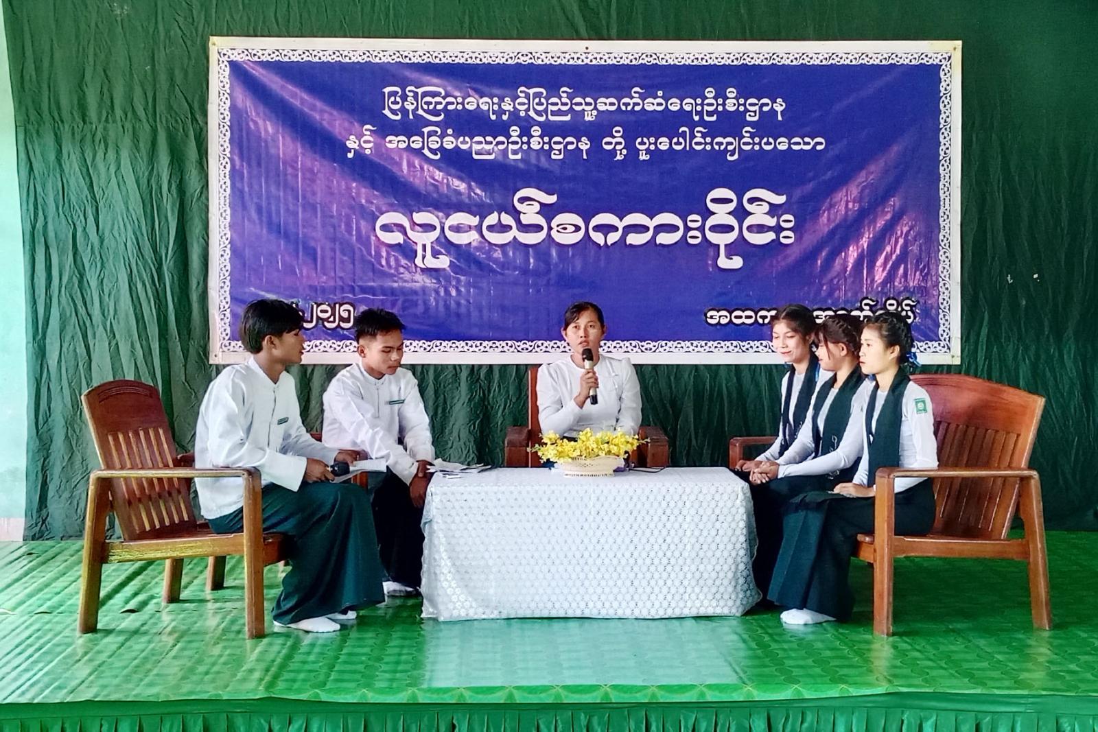 ဆက်လက်၍ လူငယ်စကားဝိုင်းကို ကျင်းပရာ ပြန်ကြားရေးနှင့်ပြည်သူ့ဆက်ဆံရေးဦးစီးဌာန ဦးစီးအရာရှိ ဒေါ်ဖြူဖြူသိန်းက ဦးဆောင်၍ Grade-11 ကျောင်းသား မျိုးထက်အာင်၊ Grade-11 ကျောင်းသား မောင်နေဇာလင်း ၊ Grade-11 ကျောင်းသူ မနှင်းလွင်လွင်ဦး၊ Grade-11 ကျောင်းသူ မဖြိုးသဇင်ဗိုလ်၊ Grade-11 ကျောင်းသူ မပိုးဇာခြည်တို့က အင်တာနက်၏ကောင်းကျိုးဆိုးကျိုးများ၊ မူးယစ်ဆေးဝါးအန္တရာယ်၊ ပလတ်စတစ်သုံးစွဲခွဲခြင်းအန္တရာယ်၊ စာဖတ်ခြင်း၏အကျိုးကျေးဇူး၊ သစ်တောပြုန်းတီးခြင်းနှင့်ကာကွယ်ထိန်းသိမ်းခြင်း စသည့် ခေါင်းစဉ်တို့ဖြင့် အသီးသီးဆွေးနွေးကြပြီး တက်ရောက်လာသည့် ကျောင်းသား၊ ကျောင်းသူများက မိမိတို့သိလိုသည်များ ပါဝင်ဆွေးနွေးခဲ့ကြကြောင်း သိရသည်။