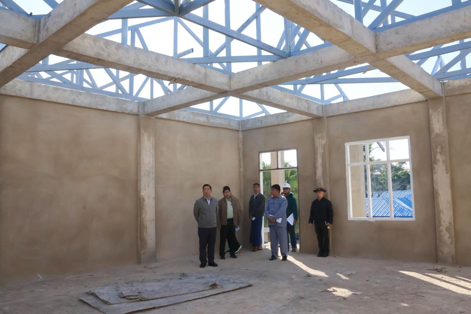ထို့နောက် ပြည်နယ်ဝန်ကြီးချုပ်နှင့် တာဝန်ရှိသူများသည် ပြည်နယ်စည်ပင်သာယာ ရုံးဝင်းအတွင်း ပြည်နယ်ငွေလုံးငွေရင်းရန်ပုံငွေဖြင့် ဆောင်ရွက်နေသည့် ၁၀၂ ပေ x ၃၆ ပေ နှစ်ထပ်သံကူကွန်ကရစ် လွိုင်ကော်မြို့နယ်စည်ပင်သာယာရေးအဖွဲ့ရုံး အဆောက်အအုံ တည်ဆောက်နေမှုကို ကြည့်ရှုစစ်ဆေးသည်။