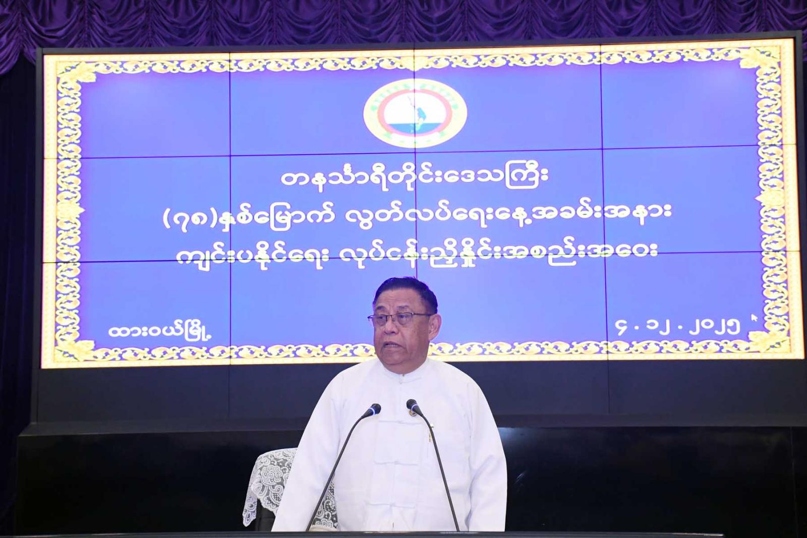 ၂၀၂၆ ခုနှစ်၊ (၇၈) နှစ်မြောက် လွတ်လပ်ရေးနေ့အခမ်းအနားကျင်းပနိုင်ရေး လုပ်ငန်းညှိနှိုင်းအစည်းအဝေးကို ယနေနံနက် ၁၀ နာရီက ထားဝယ်မြို့၊ တိုင်းဒေသကြီးအစိုးရအဖွဲ့ရုံး၊ အစည်းအဝေးခန်းမ၌ ကျင်းပခဲ့သည်။