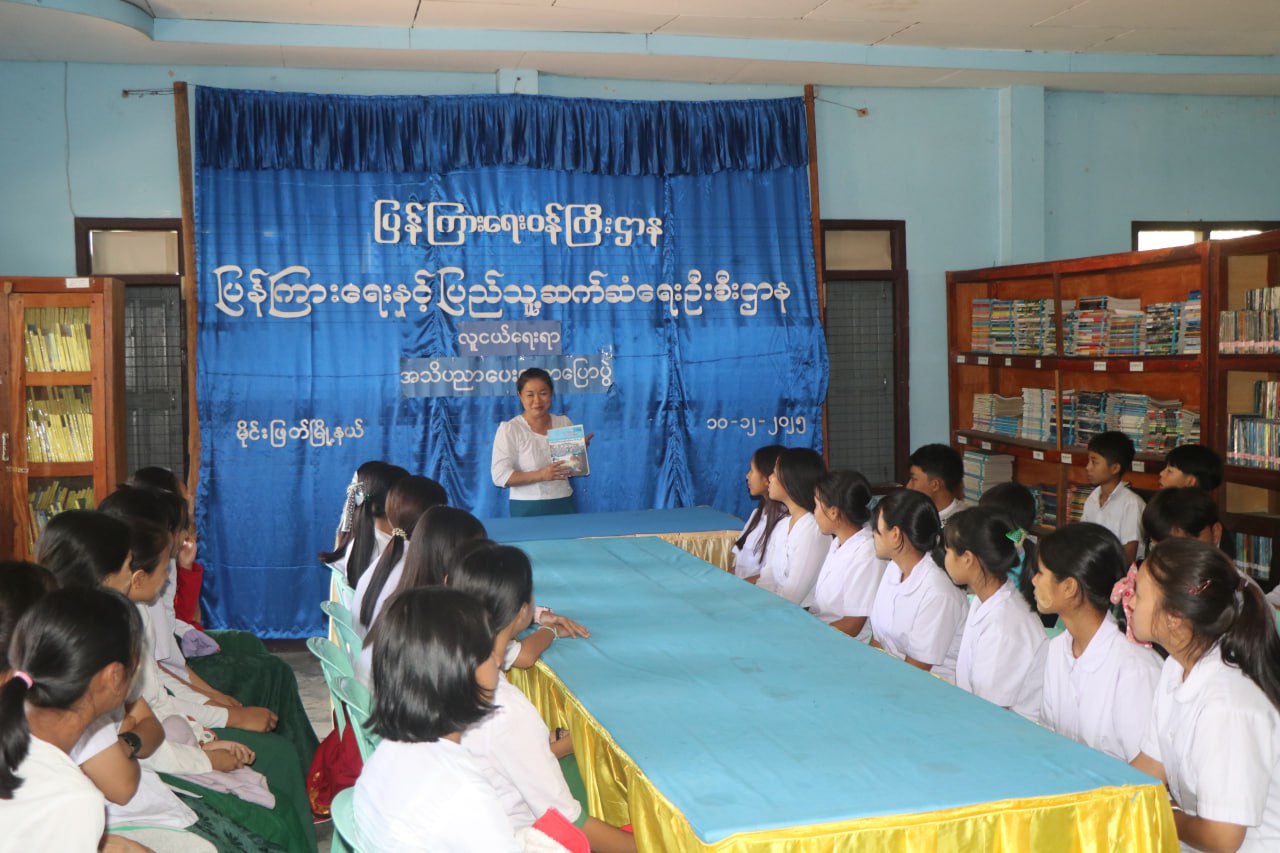 ထို့နောက် စာကြည့်တိုက်လက်ထောက်-၃ ဒေါ်နန်းကောင်ခမ်းက မြို့နယ်ပြည်သူ့စာကြည့်တိုက်တွင် သုတ၊ ရသစာပေများကို (အခမဲ့)ငှားရမ်းဖတ်ရှုနိုင်ခြင်းနှင့် စာဖတ်ခြင်း၏ အကျိုးကျေးဇူးများကို ရှင်းလင်းပြေကြားခဲ့သည်။