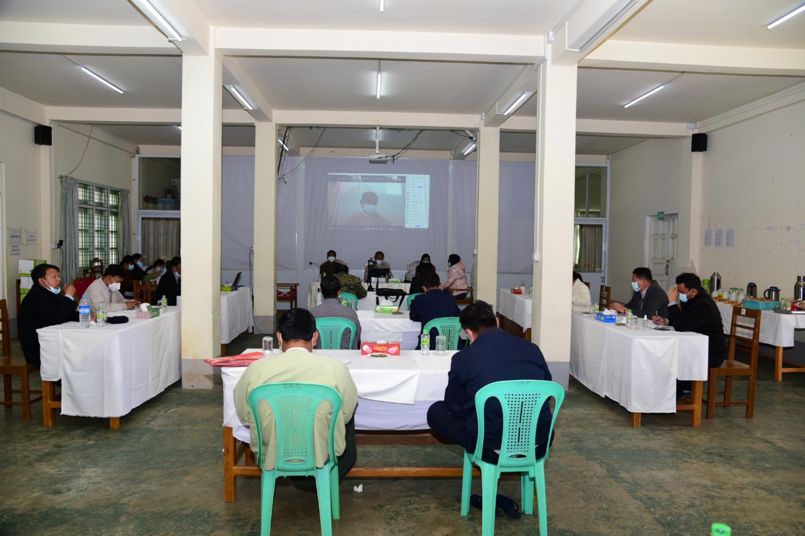 ကျေးလက်ဒေသ ဖွံ့ဖြိုးတိုးတက်ရေး ဦးစီးဌာန(ရုံးချုပ်) ညွှန်ကြားရေးမှူး ဦးကျော်စွာအောင်က စာချုပ်ပါ အချက်အလက်များ၊ လုပ်ငန်းဆောင်ရွက်မှုနှင့် ပတ်သက်သည့် စည်းကမ်းချက်များကို Video Conferencing (Zoom Meeting) ဖြင့်ရှင်းလင်း ပြောကြားသည်။