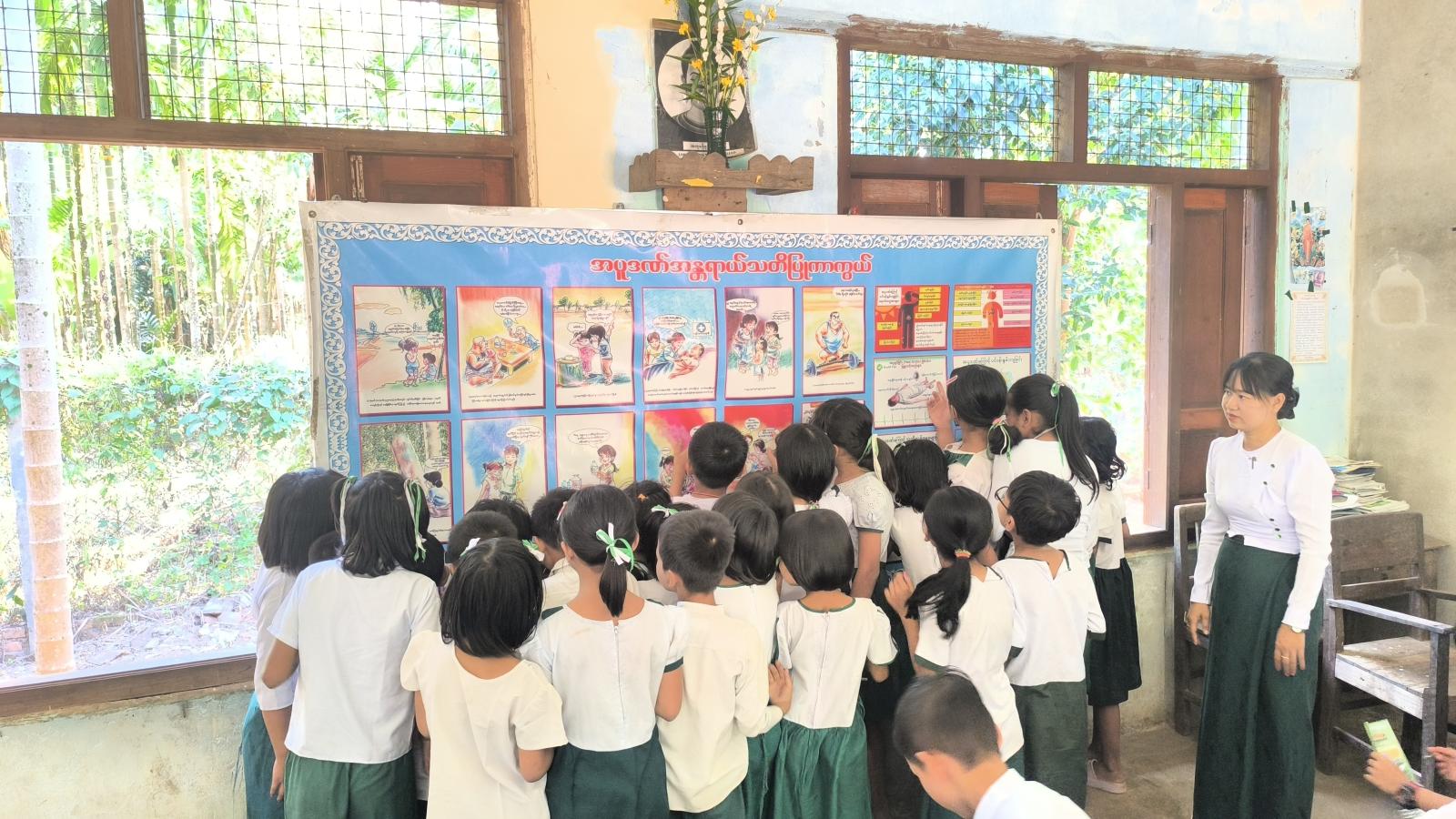ထို့နောက် မြို့နယ်ပြန်/ဆက်ဝန်ထမ်းများက ရေဘေးအန္တရာယ်၊ အပူဒဏ်အန္တရာယ်နှင့် ကလေးအလုပ်သမား ပပျောက်ရေး အသိပညာပေးနံရံကပ်စာစောင်များကို ခင်းကျင်းပြသခဲ့ရာ ကျောင်းသား၊ ကျောင်းသူများက စိတ်ပါဝင်စားစွာ ဖတ်ရှုလေ့လာခဲ့ကြကြောင်း သိရသည်။