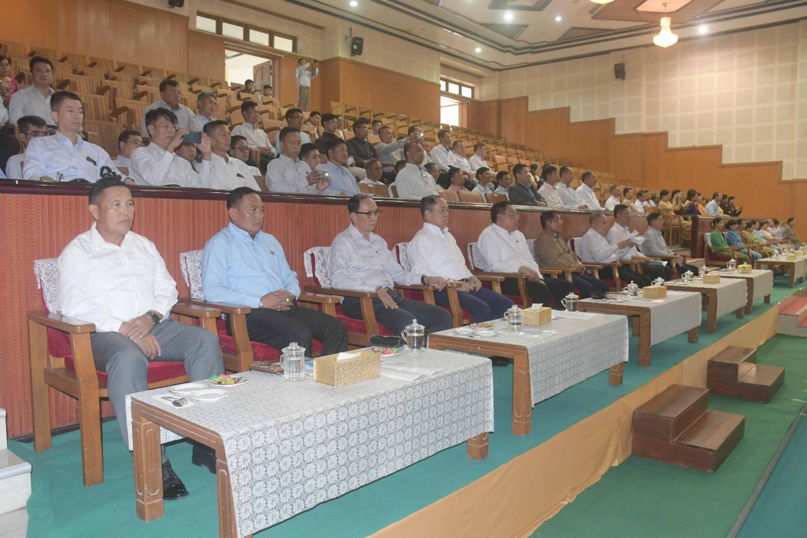 ဆက်လက်၍ ပြည်နယ်ဝန်ကြီးချုပ်နှင့်အဖွဲ့သည် ရခိုင်ပြည်နယ်အစိုးရအဖွဲ့ရုံး အစည်း အဝေးခန်းမ၌ (၇၈)နှစ်မြောက် လွတ်လပ်ရေးနေ့အခမ်းအနား ကျင်းပနိုင်ရေး (၁/၂၀၂၅)လုပ်ငန်းညှိနှိုင်းအစည်းအဝေးသို့ တက်ရောက်ကြသည်။