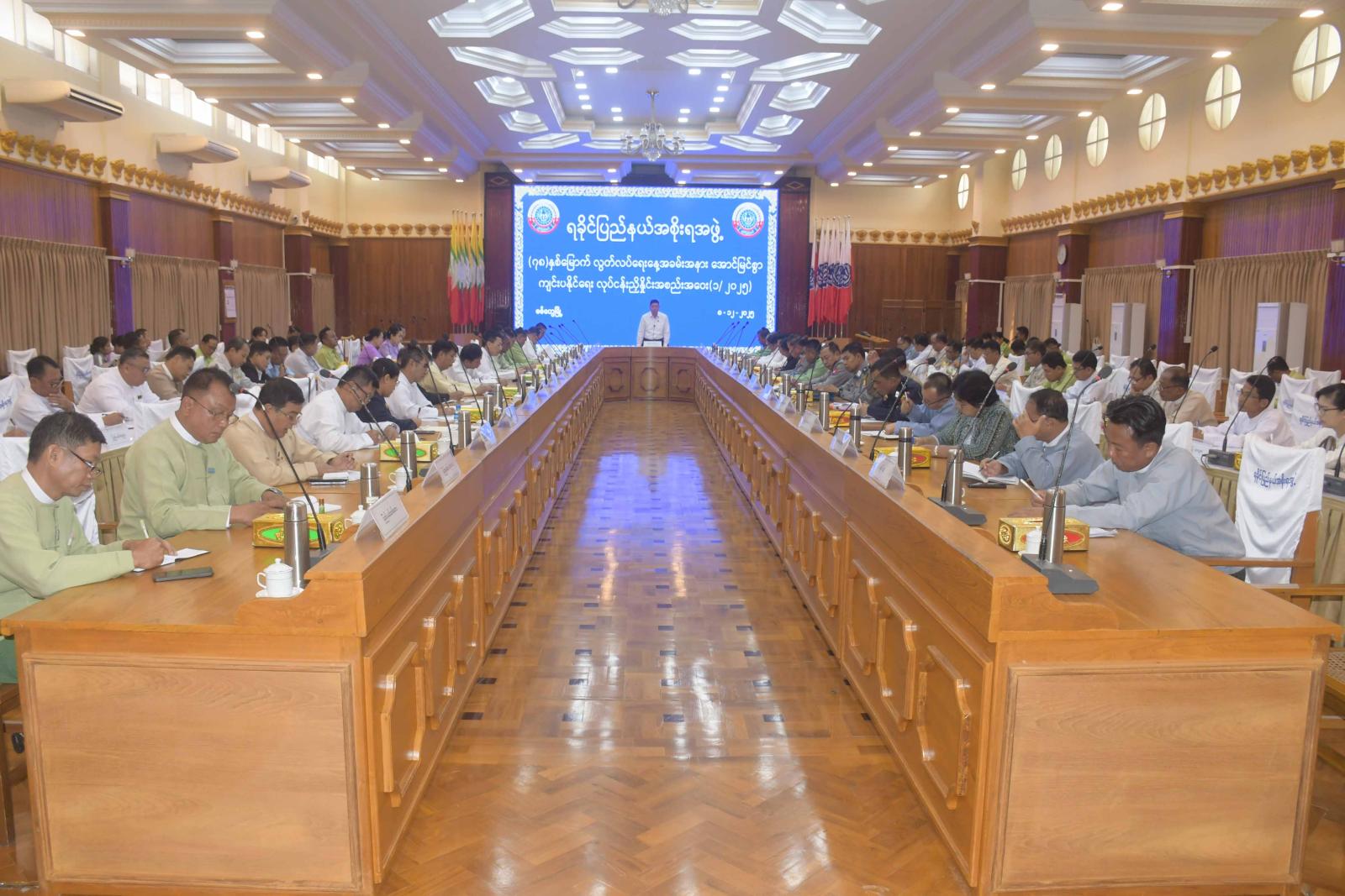 ဦးစွာ ပြည်နယ်စည်ပင်သာယာရေးအဖွဲ့၊ ညွှန်ကြားရေးမှူး ကွန်ကရစ်လမ်းခင်းခြင်း လုပ်ငန်းဆောင်ရွက်နေမှုနှင့် ပတ်သက်၍ ရှင်းလင်းတင်ပြီး ပြည်နယ်သယံဇာတရေးရာ ဝန်ကြီးက ဖြည့်စွက် ရှင်းလင်းတင်ပြသည်။ တင်ပြချက်များအပေါ် ပြည်နယ်ဝန်ကြီးချုပ်က လုပ်ငန်းများကို သတ်မှတ်စံချိန်စံညွှန်းပြည့်မီရေး၊ အချိန်မီပြီးစီးနိုင်ရေး စေတနာထားဆောင်ရွက်သွားကြရန်မှာကြားပြီး လုပ်ငန်းဆောင်ရွက်နေမှုများအား လှည့်လည်ကြည့်ရှုစစ်ဆေးကြသည်။