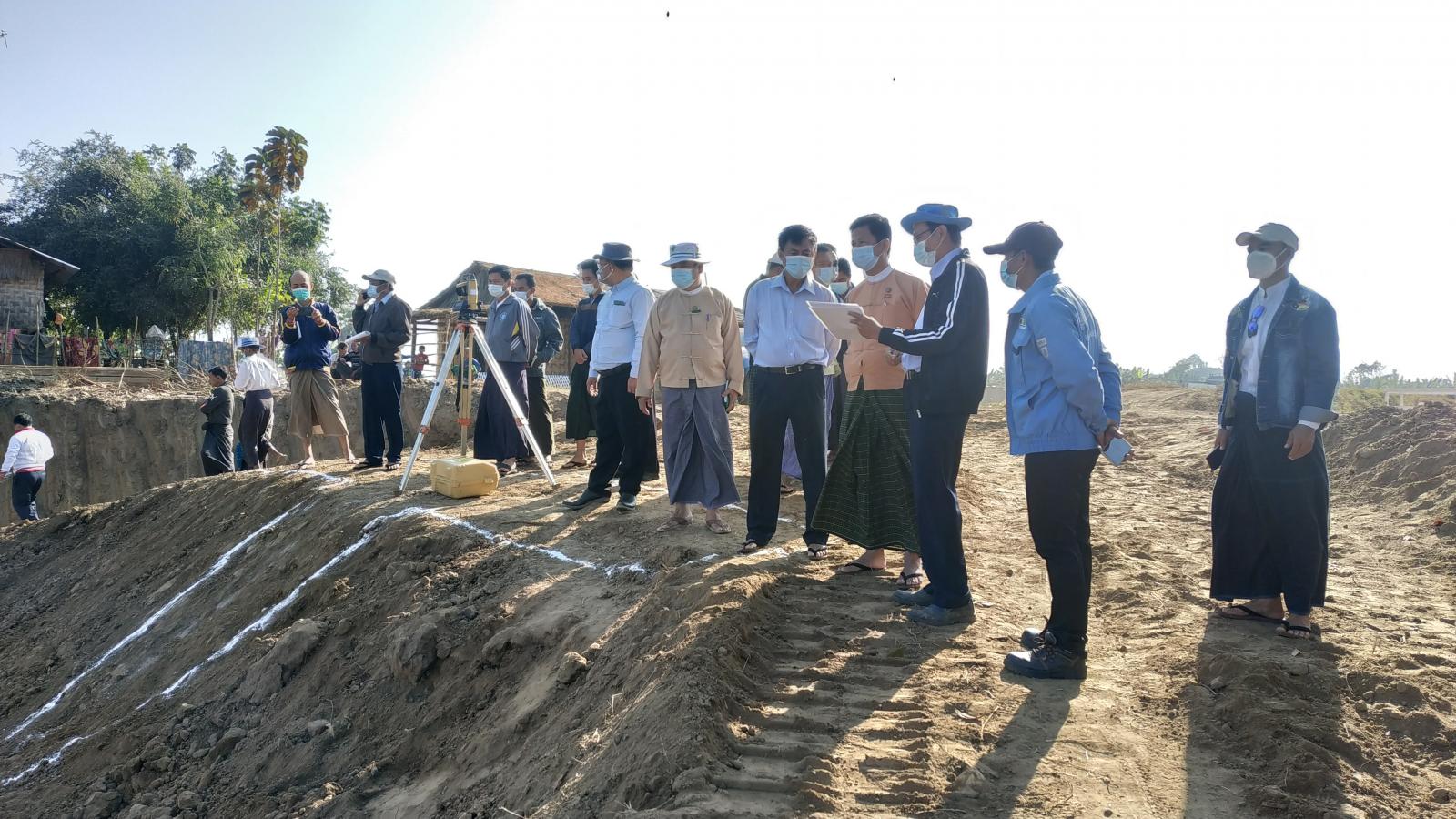 ဝန်ကြီးဦးအောင်ဇော်နိုင်နှင့်အတူ ဆည်မြောင်းနှင့် ရေအသုံးချမှု စီမံခန့်ခွဲရေး ဦးစီးဌာနမှ ဒုတိယတိုင်းဦးစီးမှူး ဦးဇော်ဦးနှင့်ခရိုင်မှူး၊ မြို့နယ်အုပ်ချုပ်ရေးမှူး ဦးမျိုးညွှန့်နှင့် မြို့နယ်အဆင့် တာဝန်ရှိသူများက လုပ်ငန်းဆောင်ရွက် နေမှုများအား ကြည့်ရူ့ခဲ့ရာ မင်းလှမြို့နယ် ဆည်မြောင်းနှင့် ရေအသုံးချမှု စီမံခန့်ခွဲရေး ဦးစီးဌာန တည်ဆေက်ရေး(၉)မှ ဦးစီးအရာရှိ ဦးသီဟအောင်မှ တည်ဆောက်ရေး လုပ်ငန်းများ ဆောင်ရွက်နေမှုအား ရှင်းလင်းပြောကြားပြီး ဝန်ကြီးက လိုအပ်သည်များကို လမ်းညွှန်မှာ ကြားခဲ့သည်။