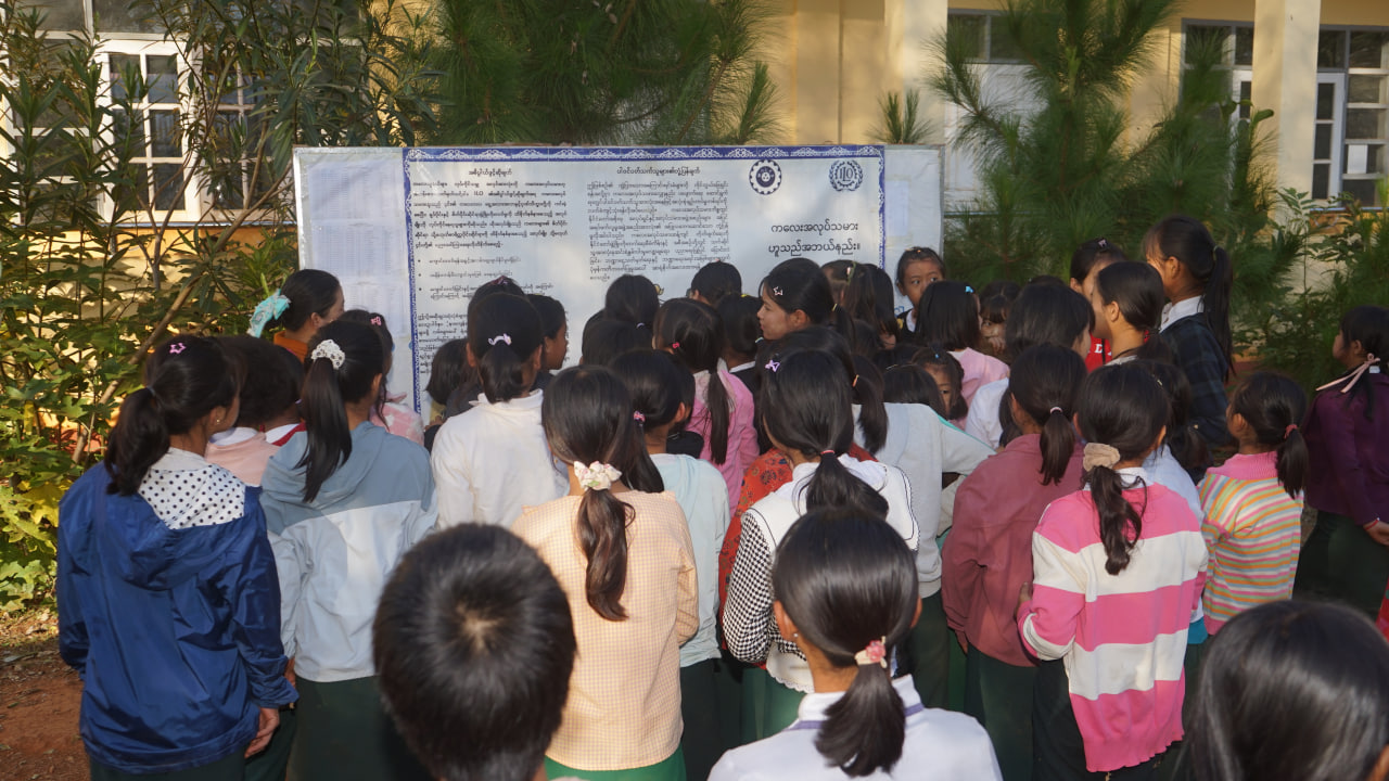 ဆက်လက်၍ ပြန်ကြားရေးနှင့်ပြည်သူ့ဆက်ဆံရေးဦးစီးဌာနမှ ပြသထားသည့် ကလေးအလုပ်သမားပပျောက်ရေး အသိပညာပေး နံရံကပ်စာစောင်များကို ကျောင်းသား၊ ကျောင်းသူများက ကြည့်ရှုခဲ့ကြပြီး ပတ်ဝန်းကျင်ထိန်းသိမ်းရေး အသိပညာပေး လက်ကမ်းစာစောင်များ ဖြန့်ဝေပေးခဲ့ကြောင်း သိရသည်။