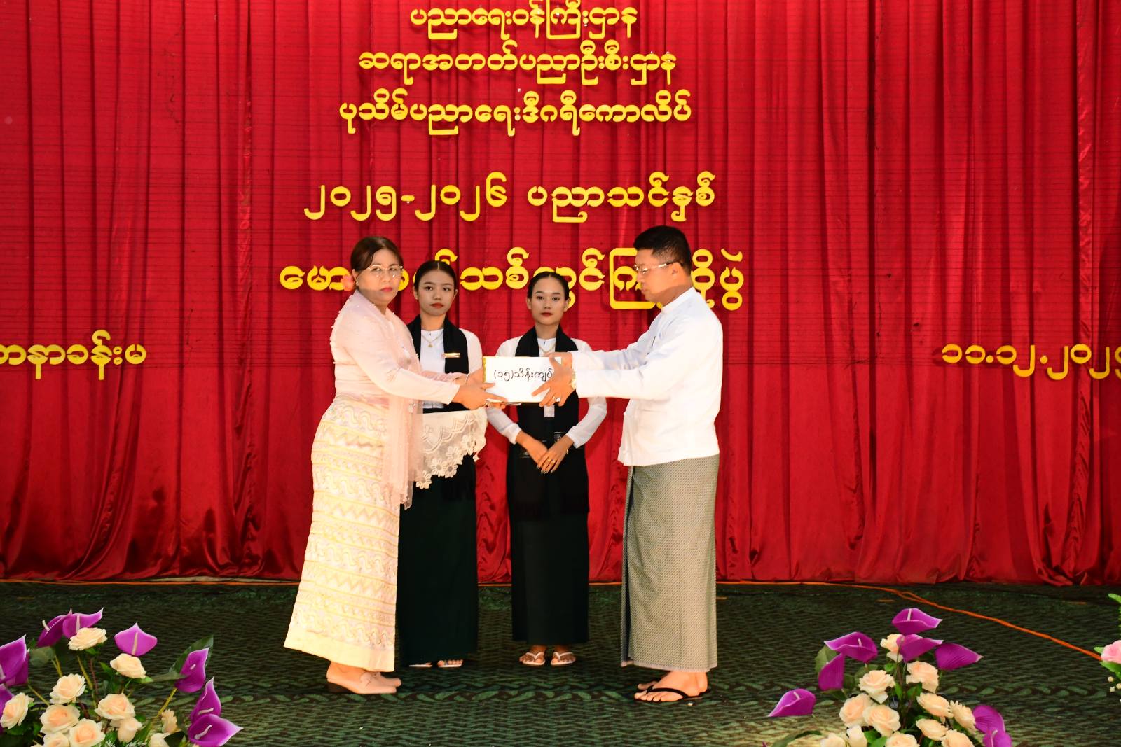 ဦးစွာ ကျောင်းသား၊ ကျောင်းသူများက “ကြိုဆိုလက်ကမ်းကံ့ကော်တန်း”သီချင်းဖြင့် အခမ်းအနားကို သီဆိုဖွင့်လှစ်ခဲ့ပြီးနောက် တိုင်းဒေသကြီးဝန်ကြီးချုပ်က“ တိုင်းဒေသကြီး၏ ပညာရေးကဏ္ဍအတွက် လူ့စွမ်းအားအရင်းအမြစ်များဖြစ်ပြီး ဆရာ၊ ဆရာမများဖြစ်လာကြမည့် မောင်တို့မယ်တို့အား ပုသိမ်ပညာရေးဒီဂရီကောလိပ်မှ နွေးထွေးစွာကြိုဆိုပါကြောင်း၊ တက္ကသိုလ်ဝင်တန်းအောင်မြင်သည့် ကျောင်းသား၊ ကျောင်းသူများမှ ပညာရေးလမ်းကြောင်းကို ရွေးချယ်ခြင်းဖြစ်ရာ စေတနာ၊ ဝါသနာ၊ အနစ်နာ နာ(၃)နာ အခြေခံပြီး လေ့လာဆည်းပူးရမည့်အပြင် ဆရာ၊ ဆရာမများဖြစ်လာမည့်သူများအနေဖြင့် ကလေးငယ်များ၏ စံနမူနာပြ လက်ဦးဆရာများဖြစ်အောင်ကြိုးစားပြီး စာဖတ်နာအောင် အမြဲမပြတ် လေ့လာဆည်းပူးကြရမည်ဖြစ်ပါကြောင်း၊ ဆရာ၊ ဆရာမများသည် ခေတ်နှင့်အညီပြောင်းလဲလာသော ပညာရေးစနစ်ကို အစဉ်လေ့လာသင်ယူပြီး အမြဲကြိုးစားနေရမည့် ထာဝရကျောင်းသားကြီးများဖြစ်ပါကြောင်း၊ ဆရာ၊ ဆရာမများသည် တပည့်များအပေါ် မတတ်သည်များကိုတတ်အောင်၊ မသိသည်များကိုသိ‌ရှိ‌အောင်၊ နားမလည်သည်များကို နားလည်အောင်၊ မကျွမ်းသည်များကိုကျွမ်းကျင်အောင်၊ မလိမ္မာသည်များကို လိမ္မာအောင်၊မယဉ်ကျေးသည်များကို ယဉ်ကျေးအောင်၊ လမ်းမှားရောက်နေသည်များကို လမ်းမှန်ရောက်အောင် သွန်သင်ဆုံးမပေးခဲ့ပြီး စာကိုလည်းသင်၊ လူကိုလည်းပြင်ပေးသူများဖြစ်ပါကြောင်း၊ ပညာရေးကိုလိုလားသည့် ဒေသခံပြည်သူများ၊ ကျောင်းသား၊ ကျောင်းသူလူငယ်လူရွယ်များအတွက် တိုင်းဒေသကြီးမှနှစ်စဉ်မွေးထုတ်ပေးလိုက်သည့် လူ့စွမ်းအားအရင်းအမြစ်များအဖြစ် လေ့လာသင်ယူမှုမပြတ် စွမ်းစွမ်းတမံ ကြိုးစားဆောင်ရွက်သွားကြစေလိုကြောင်း” ကြိုဆိုနှုတ်ခွန်းဆက်စကားများ ပြောကြားပြီး ပုသိမ်ပညာရေးဒီဂရီကောလိပ်အတွက် ချီးမြှင့်ငွေများပေးအပ်ရာ ကျောင်းအုပ်ကြီးကလက်ခံရယူခဲ့သည်။