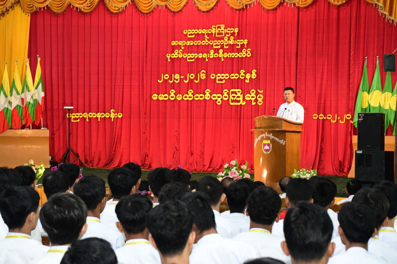 တိုင်းဒေသကြီးဝန်ကြီးချုပ် ပုသိမ်ပညာရေးဒီဂရီကောလိပ်တွင်ပြုလုပ်သည့် ၂၀၂၅-၂၀၂၆ ပညာသင်နှစ် မောင်မယ်သစ်လွင် ကြိုဆိုပွဲအခမ်းအနားတက်ရောက်