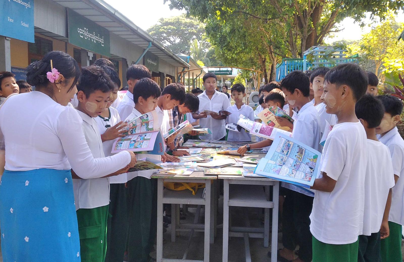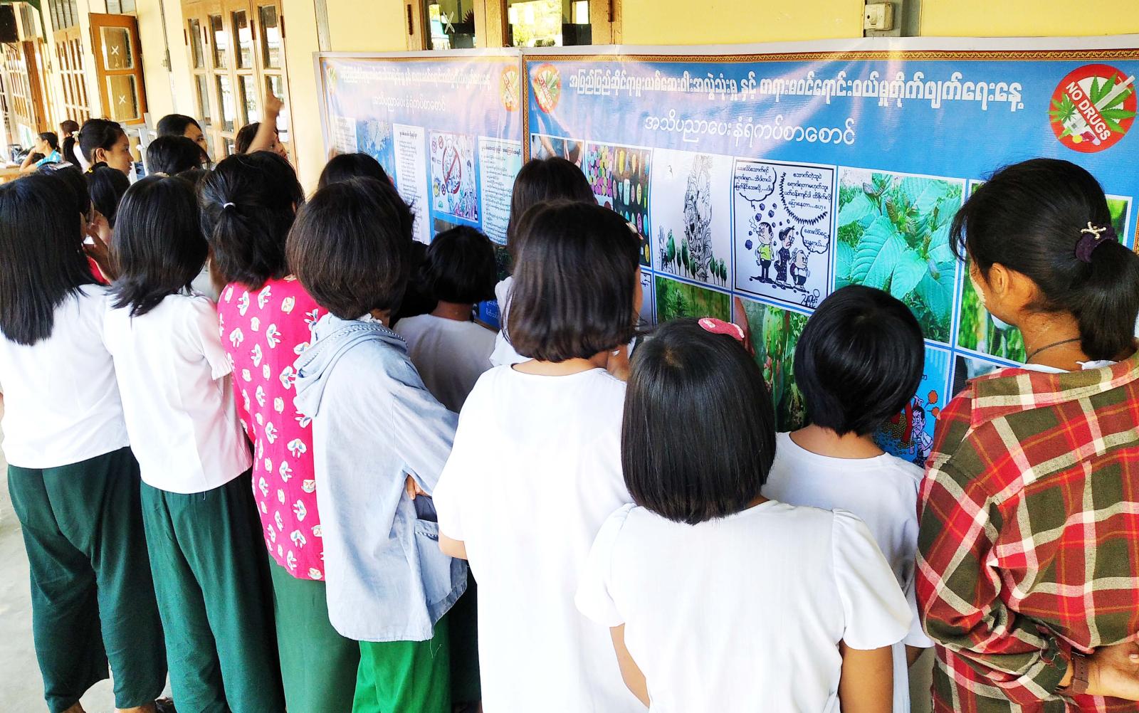 ထို့နောက် မြို့နယ်ပြန်ကြားရေးနှင့်ပြည်သူ့ဆက်ဆံရေးဦးစီးဌာနမှ ခင်းကျင်းပြသထားသည့် စာအုပ်ပြပွဲ၊ မူးယစ်အန္တရာယ်လူ့ရန်စွယ်၊ မူးယစ်ဆေးဝါး၏ဆိုးကျိုးများ ပါဝင်သော မူးယစ်ဆေးဝါး အန္တရာယ်အကြောင်းသိကောင်းစရာများ၊ ပတ်ဝန်းကျင်သာယာဖို့အမှိုက်ကို စနစ်တကျစွန့်ပစ်ကျပါစို့ အသိပညာပေး နံရံကပ်စာစောင်များကို ကျောင်းသား၊ ကျောင်းသူများက စိတ်ပါဝင်စားစွာဖြင့် လေ့လာကြည့်ရှုခဲ့ကြကြောင်း သိရသည်။