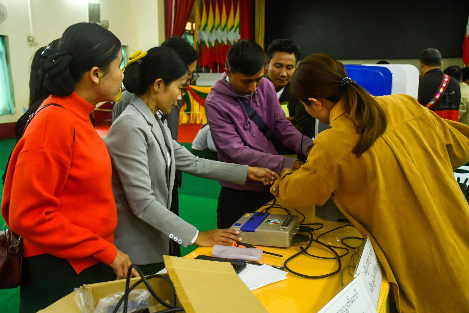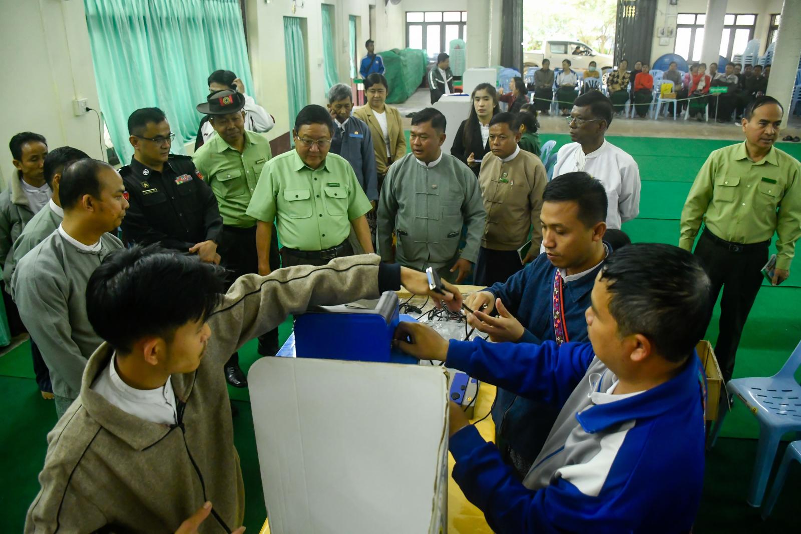 ရှမ်းပြည်နယ် (အရှေ့ပိုင်း)၊ တာချီလိတ်မြို့တွင် ၂၀၂၅ ခုနှစ်၊ ဒီဇင်ဘာလ ၂၈ ရက်နေ့တွင် ကျင်းပပြုလုပ်မည့် ပါတီစုံဒီမိုကရေစီအထွေထွေရွေးကောက်ပွဲအောင်မြင်စွာ ကျင်းပနိုင်ရေးအတွက် မဲရုံများတွင် မဲဆန္ဒရှင်များ ဆန္ဒမဲပေးစဉ် အီလက်ထရောနစ်မဲပေးစက် (MEVM) ၏ စက်အစိတ်အပိုင်း တစ်စုံတစ်ရာချို့ယွင်းခြင်းဖြစ်ပေါ်ပါက ဆက်လက်မဲပေးခြင်းဆောင်ရွက်နိုင်ရန် ဇာတ်တိုက်လေ့ကျင့်မှုကို ယနေ့ မွန်းလွဲ ၂ နာရီက အောင်မြတ်ခန်းမ၌ ပြုလုပ်ခဲ့သည်။