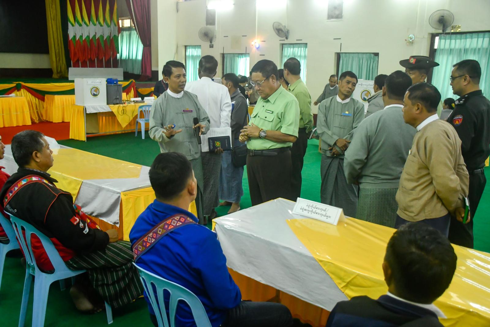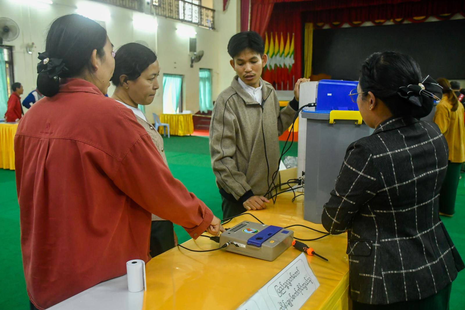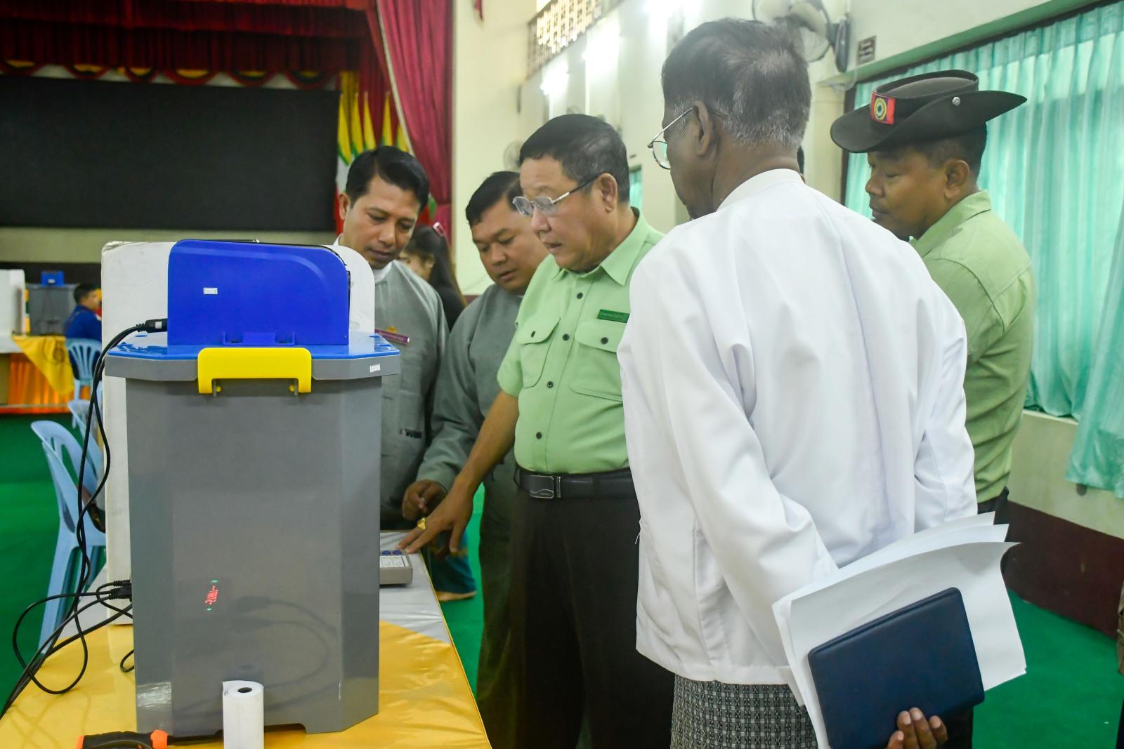 ထိုသို့ဇာတ်တိုက်လေ့ကျင့်ရာတွင် ပြည်သူ့လွှတ်တော်၊ အမျိုးသားလွှတ်တော်၊ တိုင်းဒေသကြီး/ ပြည်နယ်လွှတ်တော် (တိုင်းရင်းသားလူမျိုးကိုယ်စားလှယ်လောင်းများအပါအဝင်) အီလက်ထရောနစ်မဲပေးစက် အသုံးပြုသည့် မဲရုံနေရာချထားမှုပုံစံဖြင့် ဆောင်ရွက်စဉ် မဲပေးစက်အစိတ်အပိုင်း တစ်စုံတစ်ရာချို့ယွင်းခြင်းဖြစ်ပေါ်ပါက အရန်စက်ဖြင့် လဲလှယ်မဲပေးခြင်း ဆက်လက်ဆောင်ရွက်နိုင်ရန် မဲရုံမှူး၊ ဒုတိယမဲရုံမှူးနှင့် မဲရုံအဖွဲ့ဝင်များ အနေဖြင့် မဲရုံမှူး၊ ဒုတိယမဲရုံမှူးနှင့် မဲရုံအဖွဲ့ဝင် လုပ်ငန်းလမ်းညွှန်ပါ ဆောင်ရွက်ရမည့် လုပ်ငန်းစဉ်များအတိုင်း အချိန်နှင့်တစ်ပြေးညီ ဆောင်ရွက်နိုင်ရေးအတွက် ဇာတ်တိုက်လေ့ကျင့်မှုများ ဆောင်ရွက်ခဲ့သည်။