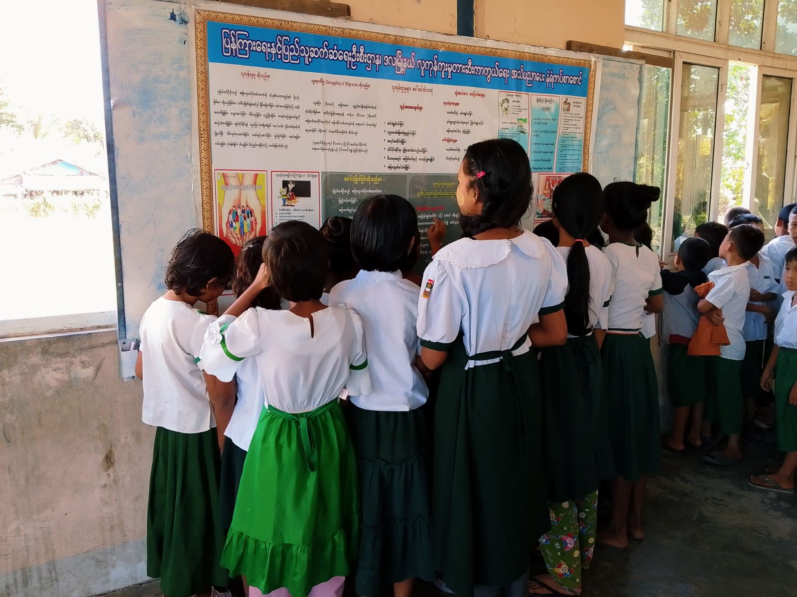 အဆိုပါစာဖတ်ရှိန်မြှင့်တင်ရေး ဟောပြောပွဲအပြီးတွင် မြို့နယ်ပြန်ကြားရေးနှင့်ပြည်သူ့ဆက်ဆံရေးဦးစီးဌာနမှ ပြသထားသော လူကုန်ကူးမှုတားဆီးကာကွယ်ရေးဆိုင်ရာ အသိပညာပေးနံရံကပ်စာစောင်များကို ကျောင်းသား၊ ကျောင်းသူများက စိတ်ပါဝင်စားစွာ ကြည့်ရှုလေ့လာခဲ့ကြသည်။