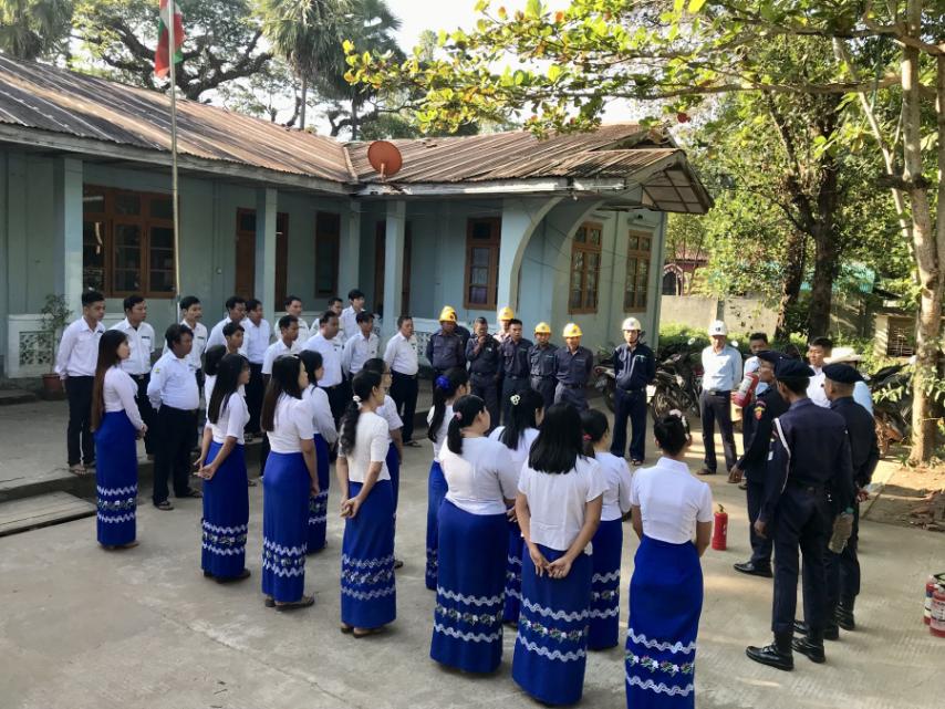 အဆိုပါ မီးဘေးလုံခြုံရေးဇာတ်တိုက်လေ့ကျင့်ခြင်းအား မြောင်းမြမြို့နယ်မီးသတ်ဦးစီးမှူး ဦးမင်းကျော်သူဦးဆောင်သည့် တပ်ဖွဲ့ဝင်များက မီးသတ်ဆေးဘူးအသုံးပြု၍ လက်တွေ့မီးငြှိမ်းသတ်ခြင်းများ ဆောင်ရွက်ခဲ့ကြောင်း သိရသည်။