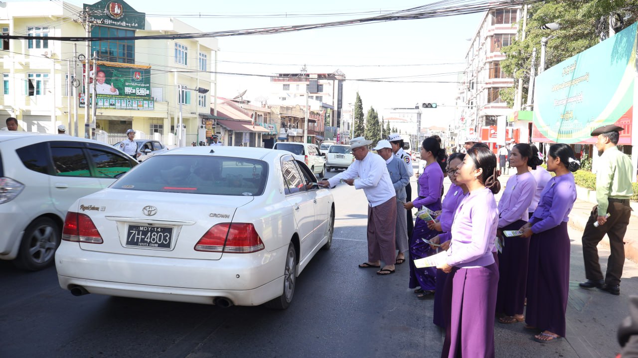 အဆိုပါ ၂၀၂၅ ခုနှစ် ပါတီစုံဒီမိုကရေစီ အထွေထွေရွေးကောက်ပွဲတွင် ဆန္ဒမဲပေးပိုင်ခွင့်ရှိသည့် နိုင်ငံသားအားလုံး ပါဝင်မဲပေးနိုင်ရေးအတွက် ရွေးကောက်ပွဲမှသည် ပိုမိုကောင်းမွန်သော အနာဂတ်ဆီသို့ "တို့အတူတူ မဲပေးကြမယ်" ရွေးကောက်ပွဲလှုံ့ဆော် လက်ကမ်းစာစောင်များ ဖြန့်ဝေခြင်းကမ်ပိန်းကို တောင်ကြီးမြို့၊ ဗိုလ်ချုပ်အောင်ဆန်းပန်းခြံရှိ နိုင်ငံသားအခွင့်အရေးမဆုံးရှုံးဖို့ မဲပေးကြပါစို့ မြေစိုက်ပိုစတာရှေ့၊ မီးပွိုင့်လမ်းဆုံတွင် ဆောင်ရွက်ရာ ဦးစွာ ရှမ်းပြည်နယ်အစိုးရအဖွဲ့ဝင်၊ ပြည်နယ်တိုင်းရင်းသားရေးရာဝန်ကြီး ဦးအောင်ကြည်ဝင်းက၊ ဌာနဆိုင်ရာတာဝန်ရှိသူများ၊ ခရိုင်နှင့်မြို့နယ် အထွေထွေအုပ်ချုပ်ရေး ဦးစီးဌာနမှဝန်ထမ်းများ၊ ခရိုင်ရဲတပ်ဖွဲ့မှ တပ်ဖွဲ့ဝင်များ၊ ခရိုင်နှင့်မြို့နယ်အမျိုးသမီးရေးရာအဖွဲ့၊ မိခင်နှင့်ကလေးစောင့်ရှောက်မှုကြီးကြပ်ရေးအဖွဲ့မှ တာဝန်ရှိသူများ၊ ပြန်ကြားရေးနှင့်ပြည်သူ့ဆက်ဆံရေးဦးစီးဌာနမှ ဝန်ထမ်းများ၊ လူဝင်မှုကြီးကြပ်ရေးနှင့် ပြည်သူ့အင်အားဝန်ကြီးဌာနမှ ဝန်ထမ်းများ၊ ယာဉ်ထိန်းရဲတပ်ဖွဲ့ခွဲမှတပ်ဖွဲ့ဝင်များအား ရွေးကောက်ပွဲ လှုံ့ဆော် လက်ကမ်းစာစောင်များအား ဖြန့်ဝေပေးပြီး၊ ပြည်နယ်ဝန်ကြီးနှင့် ဌာနဆိုင်ရာတာဝန်ရှိသူများ၊ လူမှုရေးအသင်းအဖွဲ့များက အဆိုပါ မီးပွိုင့်လမ်းဆုံတွင် ဖြတ်သန်းသွားလာနေသည့် မော်တော်ယာဉ်၊ မော်တော်ဆိုင်ကယ်မောင်းနှင်သူများနှင့် ခရီးသည်များအား ရွေးကောက်ပွဲလှုံ့ဆော် “ဒို့အတူတူ မဲပေးကြမယ်" လက်ကမ်းစာစောင်များကို ပြည်သူ့လက်ဝယ်အရောက် ဆက်လက်ဖြန့်ဝေခဲ့ကြကြောင်း သိရသည်။