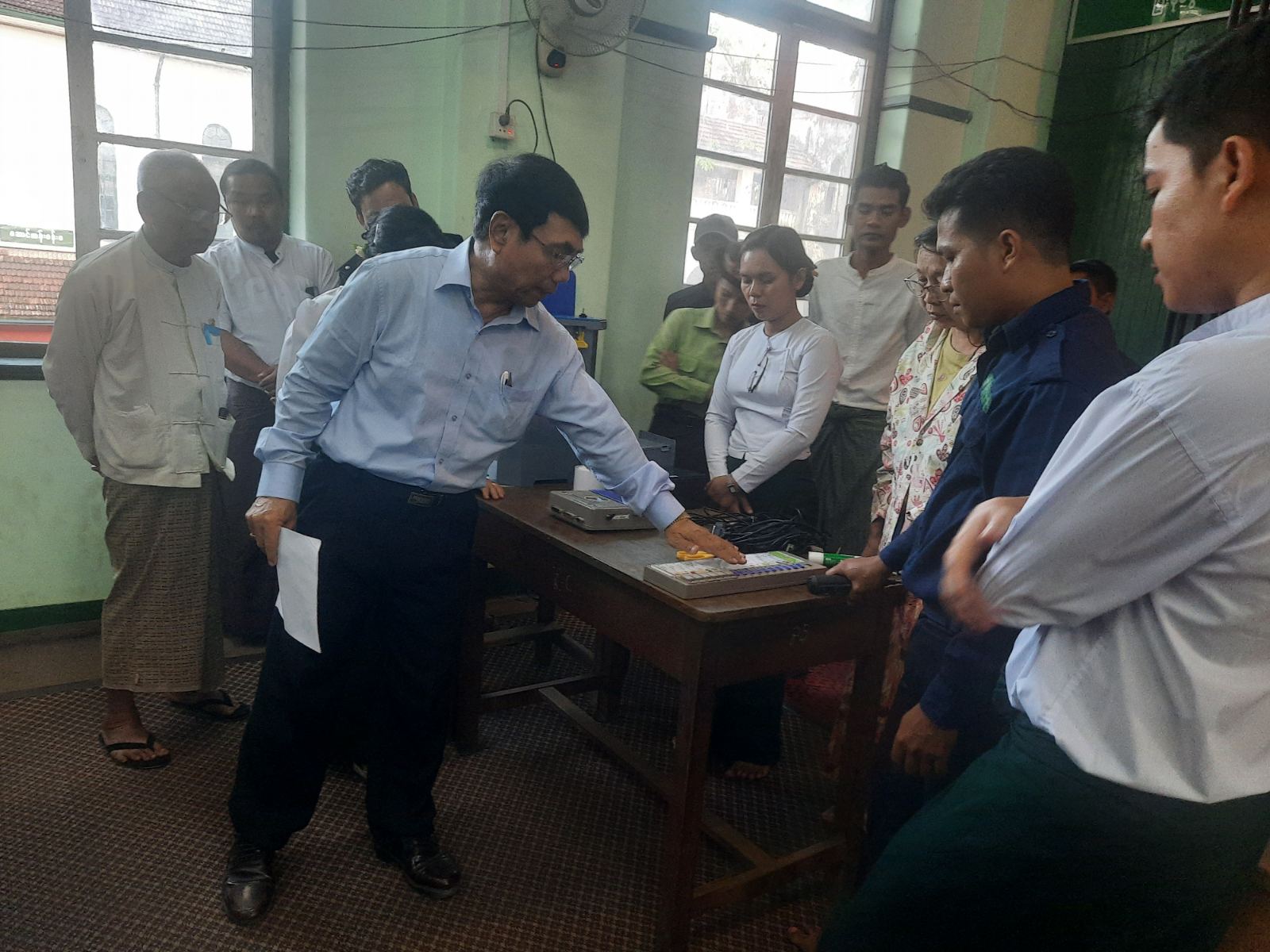 ရန်ကုန်အရှေ့ပိုင်းခရိုင်၊ ဗိုလ်တထောင်မြို့နယ်၊ အမှတ်(၁၀)ရပ်ကွက်အတွင်းရှိ အ.ထ.က(၆) ဗိုလ်တထောင်၊ အောင်ကျော်ခန်းမတွင် မြန်မာအီလက်ထရောနစ်မဲပေးစက်များ ထုတ်ယူခြင်း၊ lnstallation ပြုလုပ်ခြင်းနှင့် စက်စမ်းသပ်ခြင်း သရုပ်ပြဇာတ်တိုက်လေ့ကျင့်ခြင်းအား ဒီဇင်ဘာ ၁၁ ရက်နေ့ ညနေ ၄နာရီခွဲက ကျင်းပခဲ့သည်။
