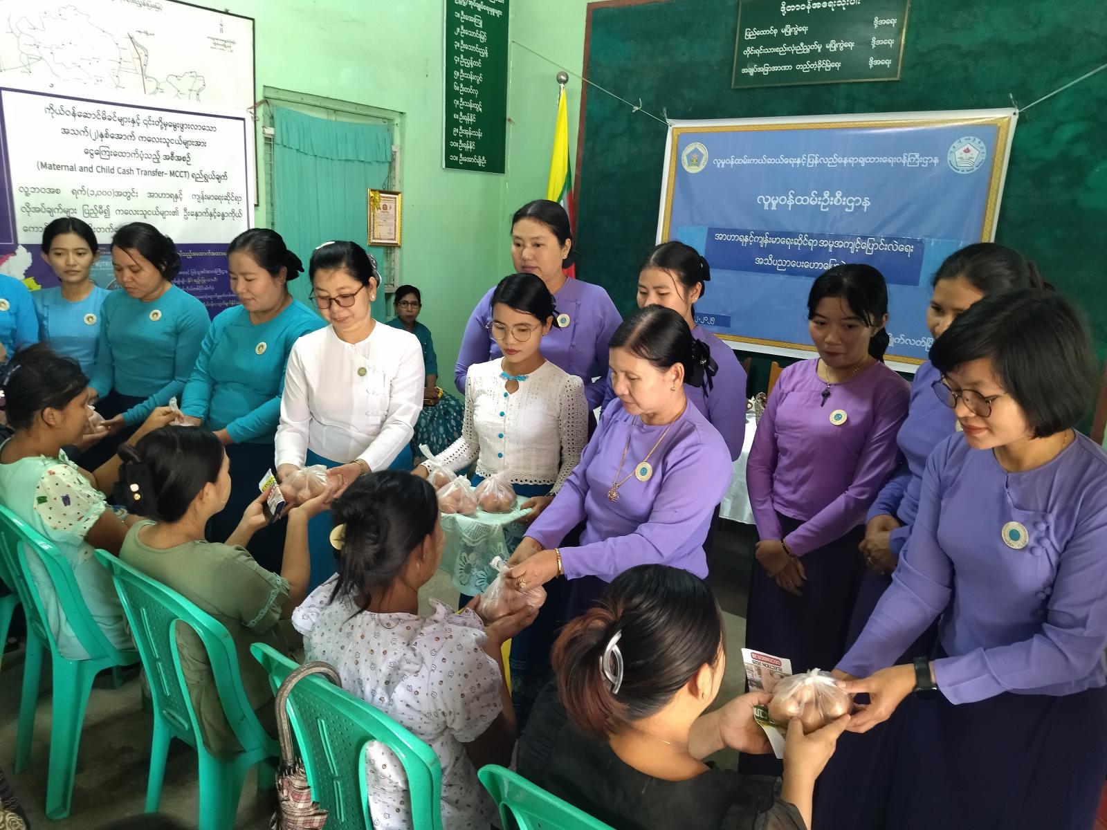 ထို့နောက် အခမ်းအနားတက်ရောက်လာသည့် ကိုယ်ဝန်ဆောင်မိခင်များနှင့် ၎င်းတို့မှမွေးဖွားလာသည့် အသက်(၂)နှစ်အောက်ကလေးငယ်များအား အာဟာရပစ္စည်းဖြစ်သည့် ကြက်ဥများကို တာဝန်ရှိသူများမှ ပေးအပ်ခဲ့ကြကြောင်း သိရသည်။