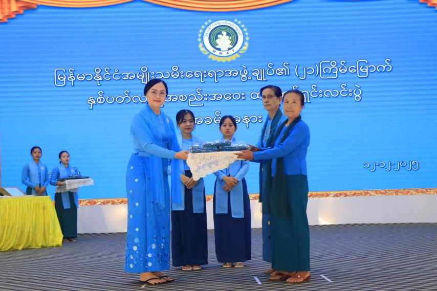 ဆက်လက်ပြီး တာဝန်ရှိသူများက အဖွဲ့ဝင်သစ်များအား အဖွဲ့ဝင်ကတ်နှင့်ရင်ထိုးတံဆိပ်များတပ်ဆင်ပေးခြင်း၊ ရပ်ကွက်/ကျေးရွာများနှင့် စီမံချက်ကျေးရွာများသို့ အဖွဲ့ဝင်ဝတ်စုံများပေးအပ်ခြင်း၊ ကရင်ပြည်နယ်အမျိုးသမီးရေးရာအဖွဲ့သို့ အလှူရှင်များမှ အလှူငွေပေးအပ်ခြင်းနှင့် ဂုဏ်ပြုမှတ်တမ်းလွှာ ပြန်လည်ပေးအပ်ခဲ့ကြသည်။