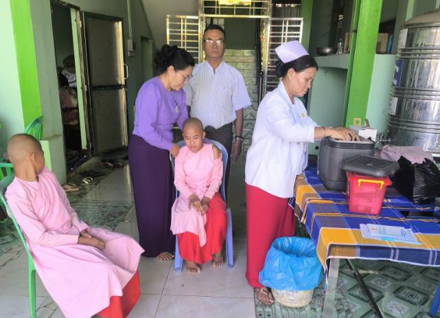 ကာကွယ်ဆေးထိုးနှံပေးရာတွင် မြို့နယ်ကျန်းမာရေးဦးစီးဌာန၏ ကြီးကြပ်မှုဖြင့် ကျန်းမာရေးဝန်ထမ်းများက အသက် (၉)နှစ်မှ (၁၂)နှစ်ထိ သီလရှင် (၂၂)ဦးတို့ကို သားအိမ်ခေါင်းကင်ဆာရောဂါ ကာကွယ်ဆေး (HPV)ကို ထိုးနှံပေးခဲ့ကြပြီး ကာကွယ်ဆေးထိုးနှံပေးရာသို့ မြို့နယ်မိခင်နှင့်ကလေး စောင့်ရှောက်ရေးအသင်းဝင်များ၊ မြို့နယ်အမျိုးသမီးရေးရာ အဖွဲ့ဝင်များနှင့် ကျေးရွာအုပ်စု အုပ်ချုပ်ရေးအဖွဲ့ဝင်များက လိုအပ်သည်များကူညီ ဆောင်ရွက်ပေးခဲ့ကြောင်း သိရသည်။