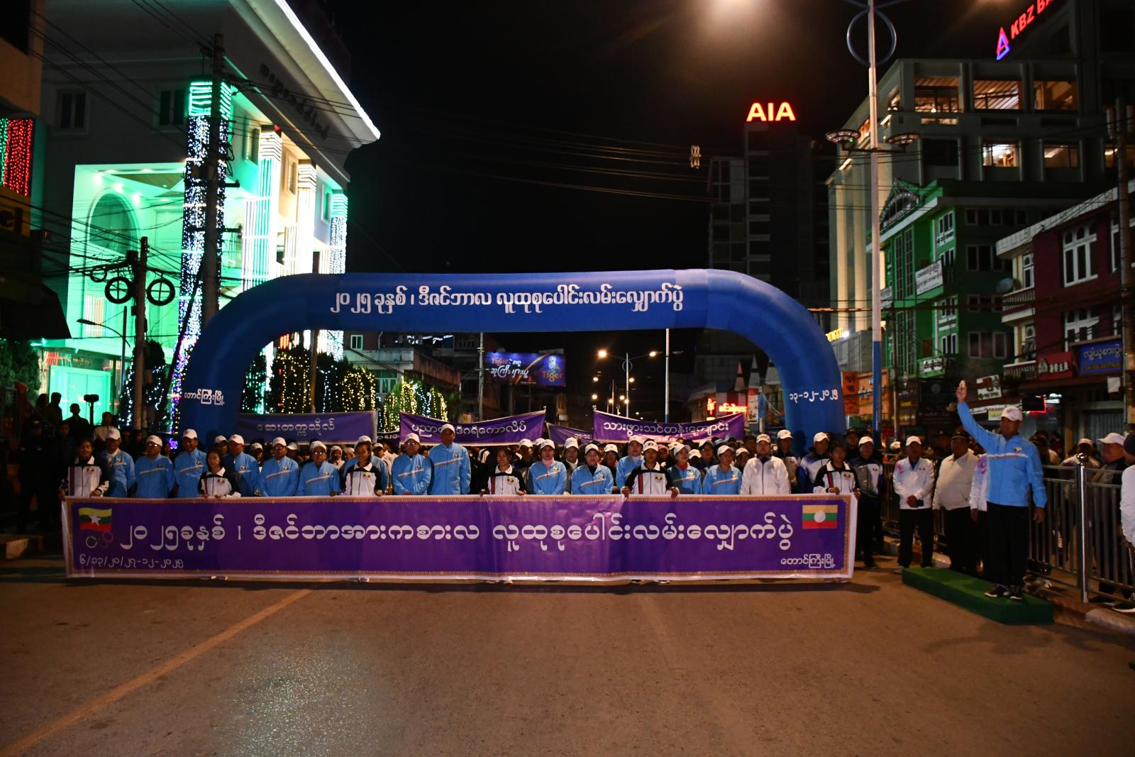 ကိုယ်လက်လှုပ်ရှားအားကစား ကျန်းမာရေးလေ့ကျင့်ခန်းများ ဆောင်ရွက်ခြင်းဖြင့် တစ်ဦးတစ်ယောက်ချင်းစီမှသည် တစ်မျိုးသားလုံးကျန်းမာကြံ့ခိုင်လာစေရေး ၂၀၂၅ ခုနှစ် ဒီဇင်ဘာလူထုအားကစားလ စုပေါင်းလူထုလမ်းလျှောက်ပွဲကို ယနေ့နံနက် ၅ နာရီ ၄၅ မိနစ်က ကမ္ဘောဇဘဏ်ရှေ့တွင် စုရပ်ထား၍ ကျင်းပရာ ပြည်နယ်ဝန်ကြီးချုပ်နှင့် တာဝန်ရှိသူများ ပါဝင်ဆင်နွှဲခဲ့ကြသည်။