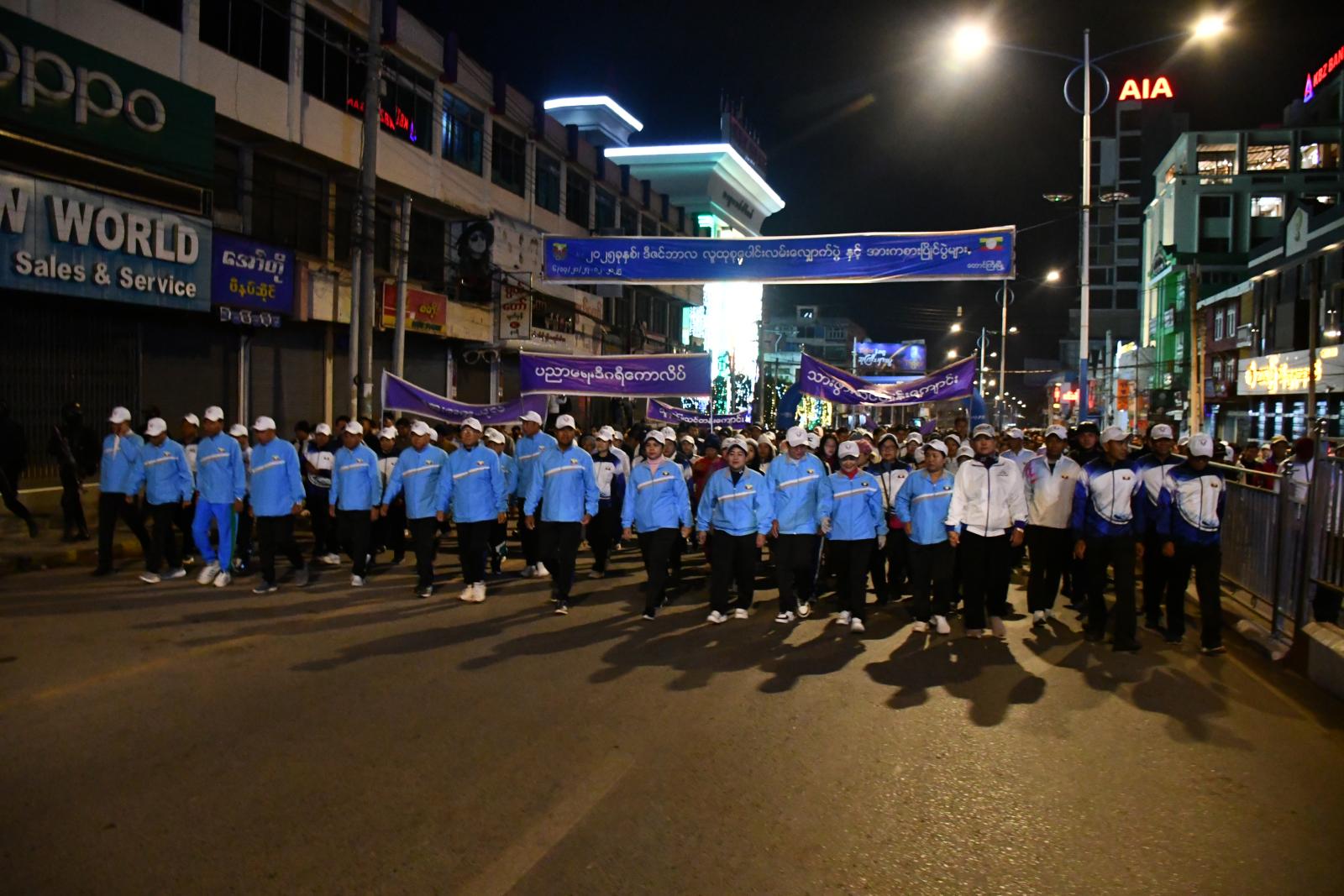 ဦးစွာ ပြည်နယ်ဝန်ကြီးချုပ်၊ ပြည်နယ်ဝန်ကြီးများ၊ ပြည်နယ်အစိုးရအဖွဲ့ဝင်များ၊ ဌာနဆိုင်ရာများ၊ တက္ကသိုလ်၊ ပညာရေးဒီဂရီကောလိပ်၊ သိပ္ပံကျောင်းနှင့်အခြေခံပညာကျောင်းများမှ ကျောင်းသား၊ ကျောင်းသူ၊ ဆရာ၊ ဆရာမများ၊ တောင်ကြီးမြို့ပေါ်ရပ်ကွက်နေ ပြည်သူများ စုစုပေါင်း ၃၁၀၀ ဦးခန့်သည် စုရပ်ဖြစ်သော ကမ္ဘောဇဘဏ်ရှေ့မှ ဗိုလ်ချုပ်အောင်ဆန်းလမ်းအတိုင်း ဗိုလ်ချုပ်အောင်ဆန်းလမ်းမှ ဂနိုင်ကန်လမ်း၊ ဂနိုင်ကန်လမ်းမှ ရုံကြီးလမ်းအတိုင်း ပြည်နယ်အားကစားကွင်းအတွင်းသို့ ပျော်ရွှင်စွာစုပေါင်းလမ်းလျှောက်ခဲ့ကြပြီး ပြည်နယ်အားကစားကွင်းအတွင်း၌ အကြောလျှော့လေ့ကျင့်ခန်းများ စုပေါင်းဆောင်ရွက်၍ ကိုယ်လက်ကြံ့ခိုင်ရေးလေ့ကျင့်ခန်းအစီအစဉ်အတွဲအမှတ် (၁) နှင့် အမှတ် (၂) တို့ကို စုပေါင်းဆောင်ရွက်ခဲ့ကြသည်။