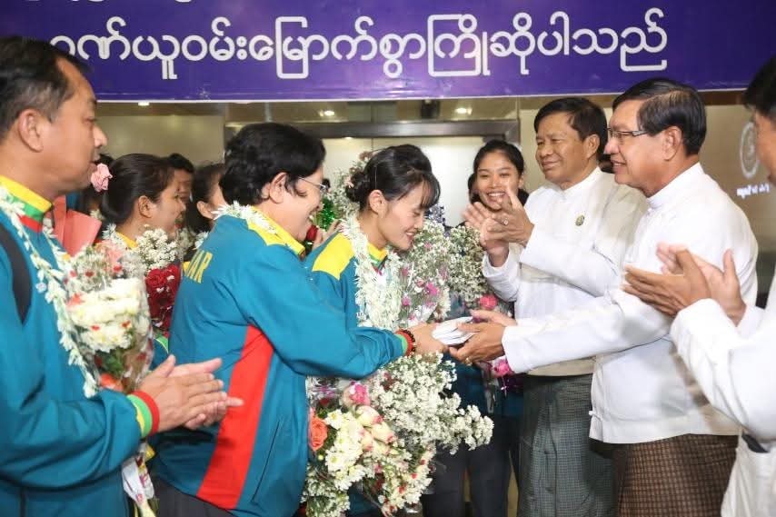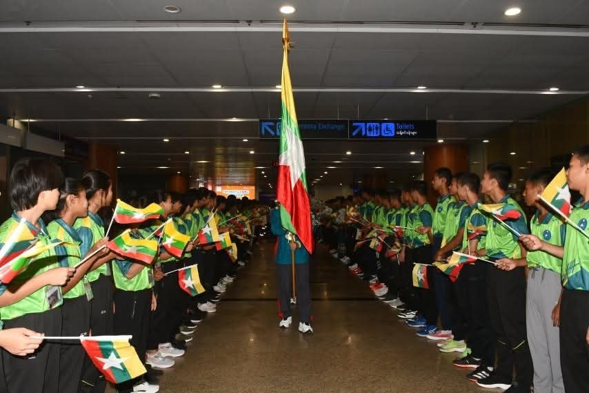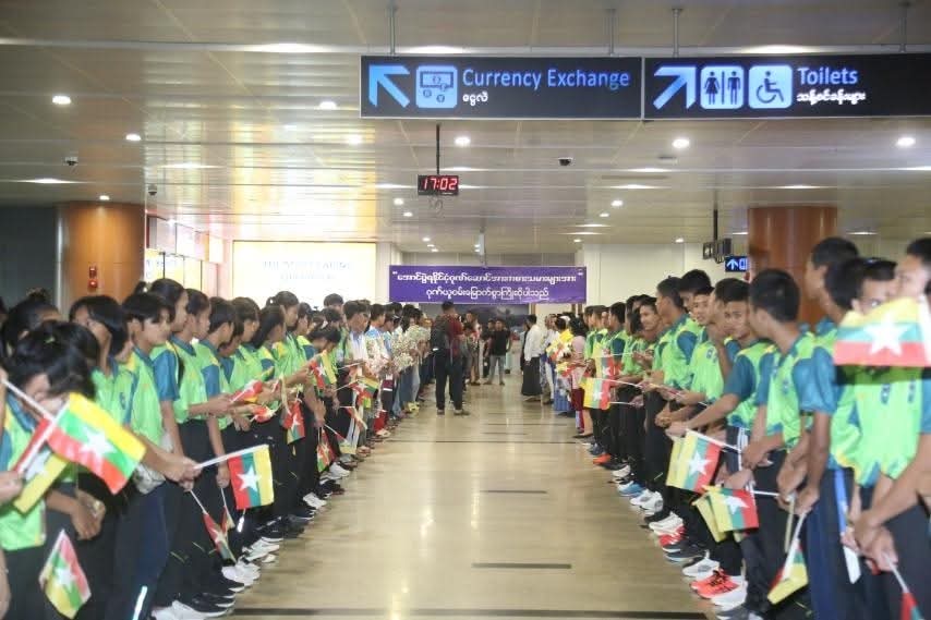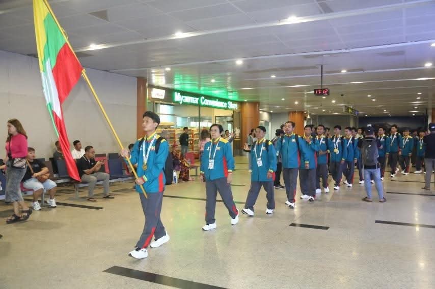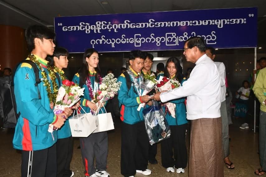 ၂၀၂၅ ခုနှစ် ဒီဇင်ဘာလ (၉)ရက်နေ့မှ (၂၀)ရက်နေ့အထိ ထိုင်းနိုင်ငံ၊ ဘန်ကောက်မြို့၌ ကျင်းပသည့် (၃၃)ကြိမ်မြောက် အရှေ့တောင်အာရှ အားကစားပြိုင်ပွဲတွင် ရွှေ၊ ငွေ၊ ကြေး အသီးသီးဆွတ်ခူးခဲ့သော ခြင်းလုံး၊ ပိုက်ကျော်ခြင်း(ကွင်းသွင်)၊ ပီတန်း၊ တိုက်ကွမ်ဒို မြန်မာအားကစားအဖွဲ့သည် ယမန်နေ့ညနေ (၁၆ : ၃၀)နာရီအချိန်တွင် လေယာဉ်အမှတ် 8M334 အပြည်ပြည်ဆိုင်ရာ မြန်မာ့လေကြောင်းလိုင်း (MAI) ဖြင့် ရန်ကုန်အပြည်ပြည်ဆိုင်ရာလေဆိပ်သို့ ပြန်လည်ရောက်ရှိလာရာ ရန်ကုန်တိုင်းဒေသကြီးအစိုးရအဖွဲ့ ဝန်ကြီးချုပ် ဦးစိုးသိန်းနှင့် အစိုးရအဖွဲ့ဝင်ဝန်ကြီးများ၊ အားကစာနှင့်ကာယပညာသိပ္ပံ(ရန်ကုန်)ကျောင်းအုပ်ကြီးနှင့် တာဝန်ရှိပုဂ္ဂိုလ်များ၊ ရန်ကုန်တိုင်းဒေသကြီး အားကစားနှင့်လူငယ်ရေးရာ အထောက်အကူပြု လုပ်ငန်းကော်မတီမှ အဖွဲ့ဝင်များ၊ မြန်မာနိုင်ငံ အားကစားအဖွဲ့ချုပ်များမှ ဥက္ကဋ္ဌများနှင့် တာဝန်ရှိသူများ၊ ပြည်ထောင်စုတိုင်းရင်းသားဖွံ့ဖြိုးရေး ဒီဂရီကောလိပ်မှ ကျောင်းအုပ်ကြီးနှင့် ကျောင်းသား၊ ကျောင်းသူများ၊ အားကစားနှင့်ကာယပညာသိပ္ပံ(ရန်ကုန်)မှ ကျောင်းသား၊ ကျောင်းသူများ၊ ပြိုင်ပွဲဝင်အားကစားသမားများ၏ မိဘဆွေမျိုးများ၊ မိဘပြည်သူများက အိုးစည်၊ ဒိုးပတ်များ၊ ပန်းစည်းများဖြင့် သောင်းသောင်းဖျဖျ ဂုဏ်ပြုကြိုဆိုခဲ့သည်။